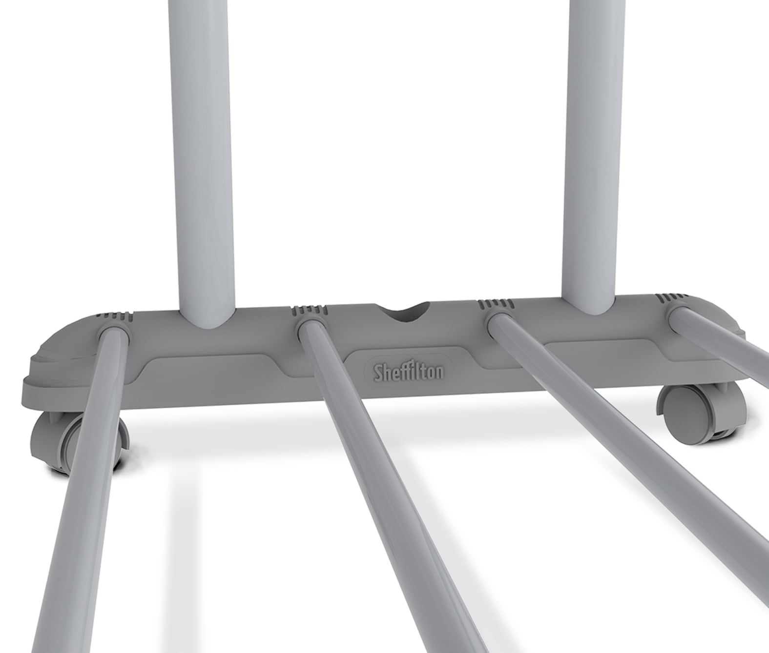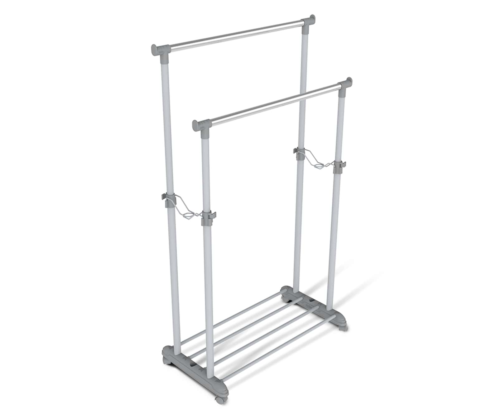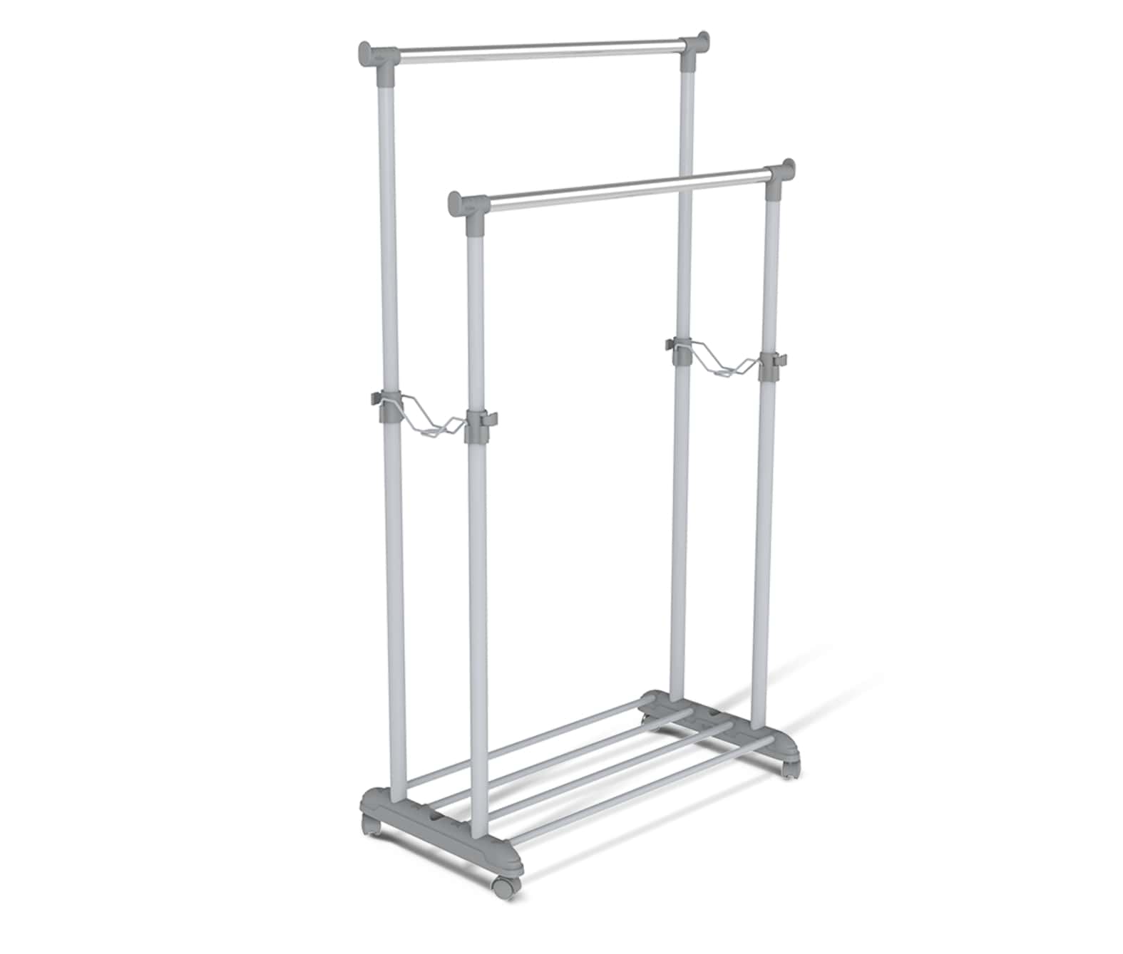 Колеса вращаются на 360 градусов, обеспечивая легкое передвижение вешалки.
