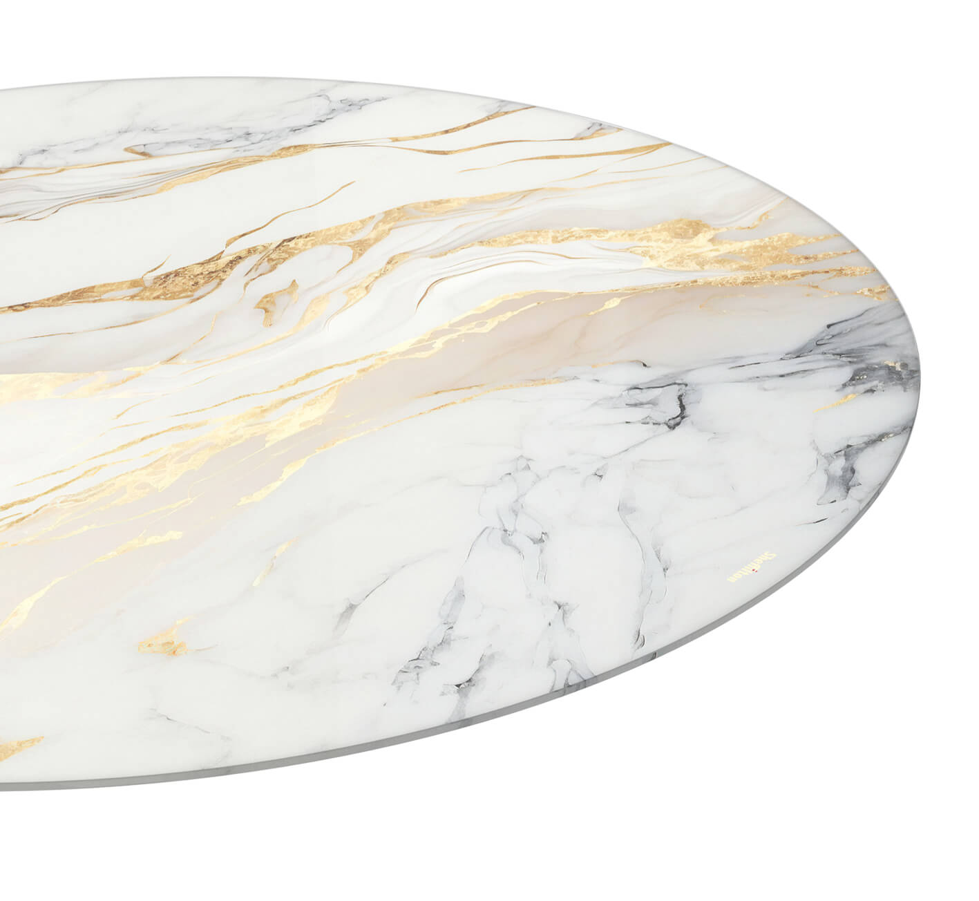 Столешница выполнена из закаленного стекла с ультрафиолетовой печатью. Одним из главных преимуществ закаленного стекла является его стойкость к высоким температурам, вибрационным нагрузкам, ударам и царапинам. Также стекло обладает высокой ударной вязкостью - энергия от столкновения с бьющим предметом распределяется относительно продолжительное время (по сравнению с обычным стеклом), что приводит к разрушению на очень мелкие осколки.