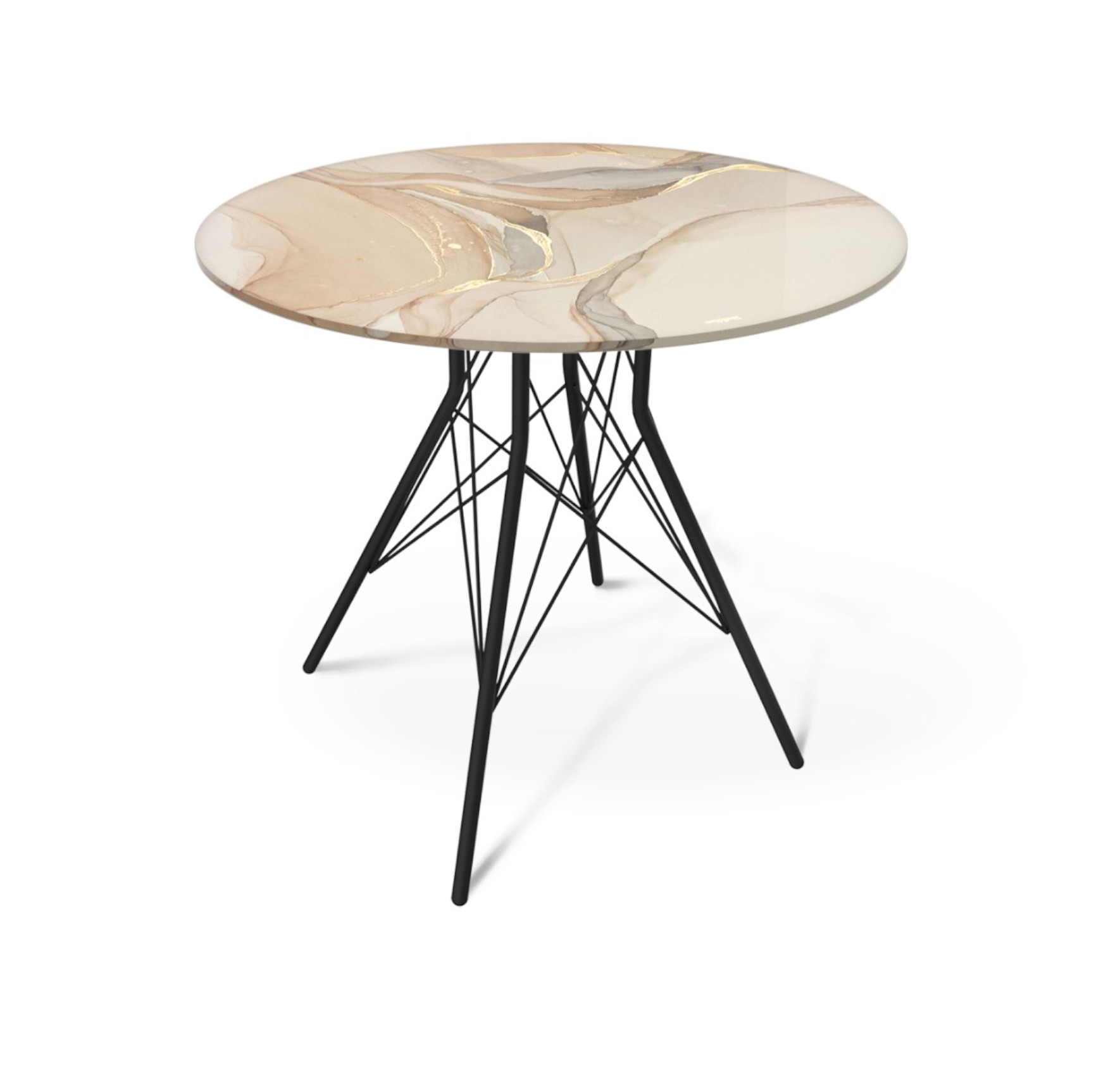 Столешница выполнена из закаленного стекла с ультрафиолетовой печатью. Одним из главных преимуществ закаленного стекла является его стойкость к высоким температурам, вибрационным нагрузкам, ударам и царапинам. Также стекло обладает высокой ударной вязкостью - энергия от столкновения с бьющим предметом распределяется относительно продолжительное время (по сравнению с обычным стеклом), что приводит к разрушению на очень мелкие осколки.