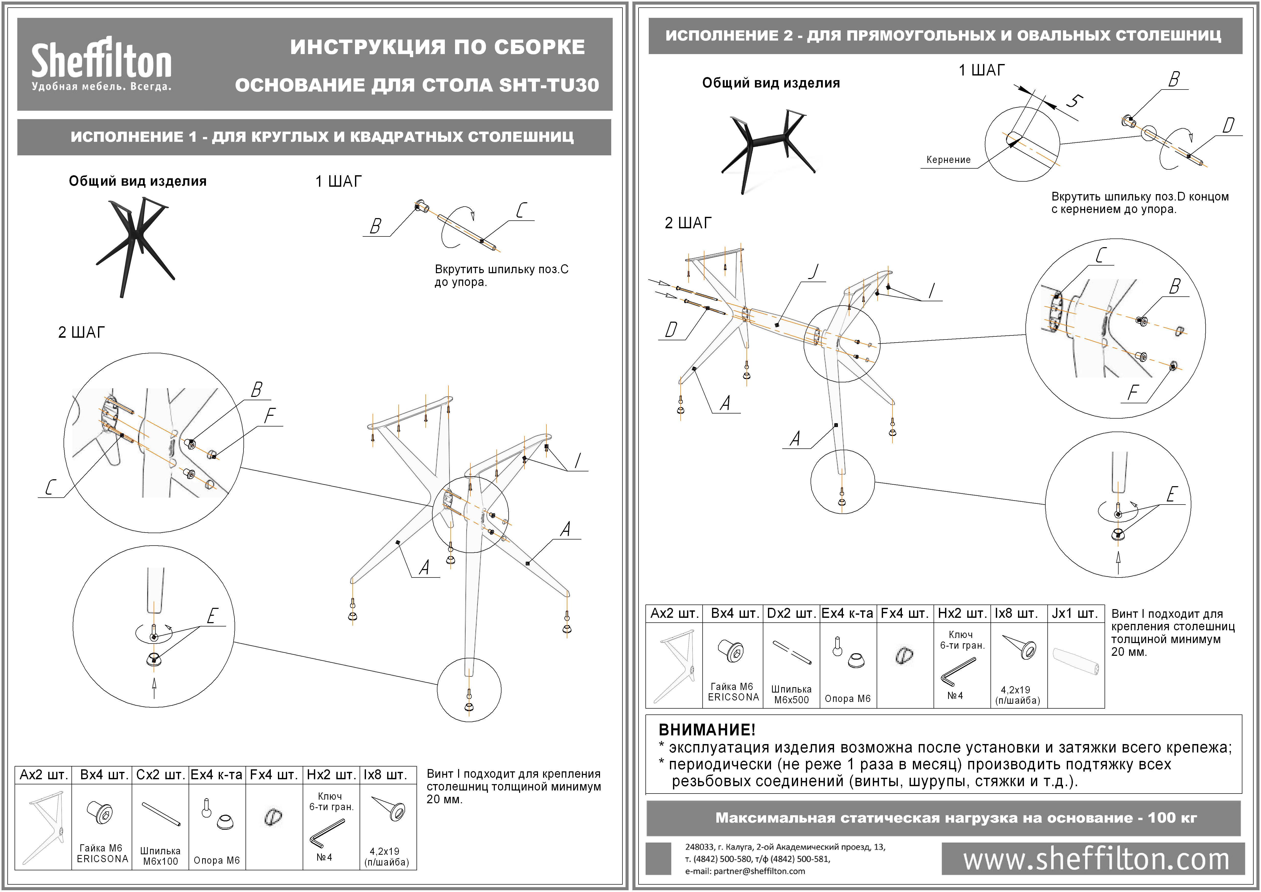 Выдерживает продолжительные нагрузки - максимальная статическая нагрузка до 100 кг.