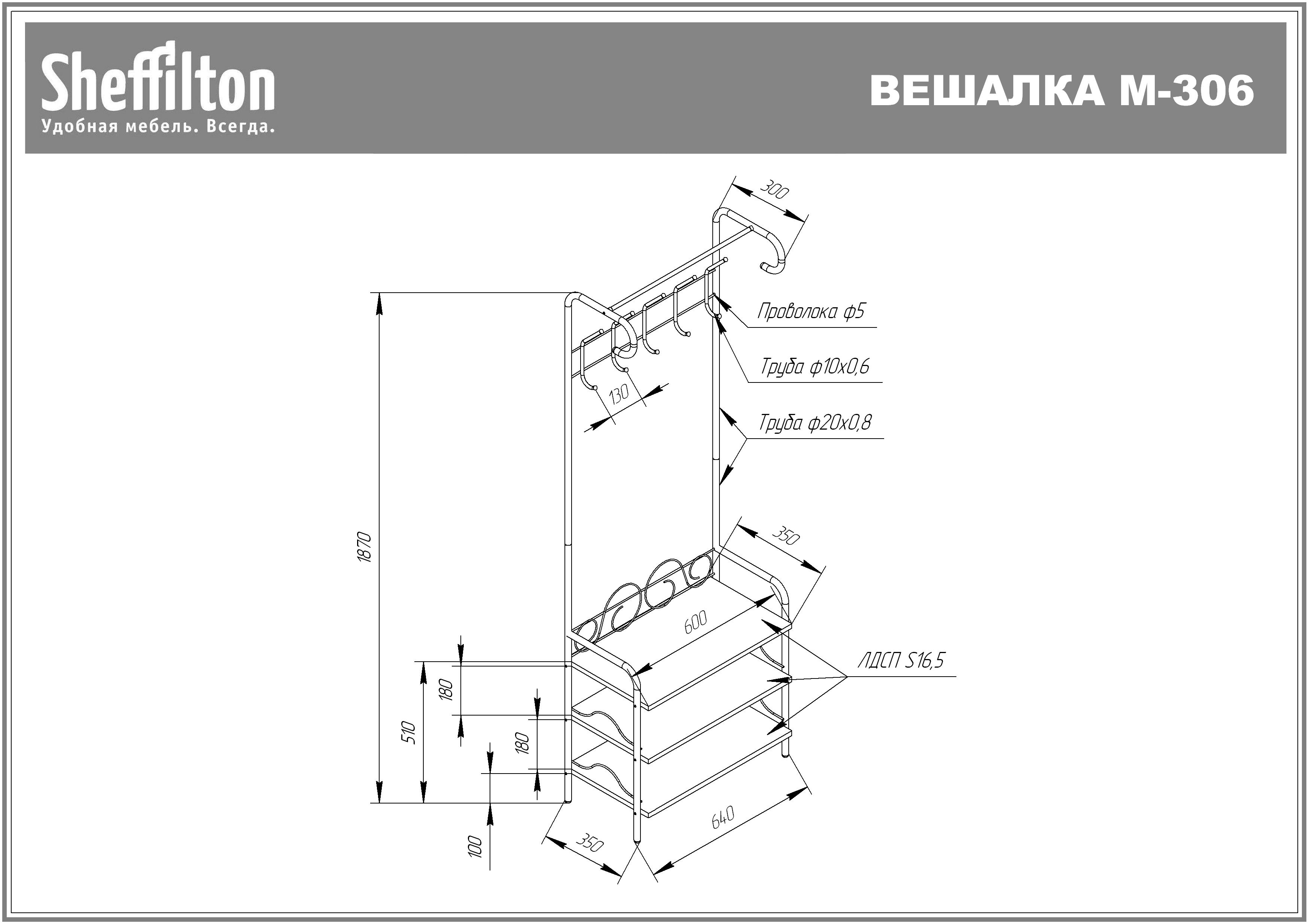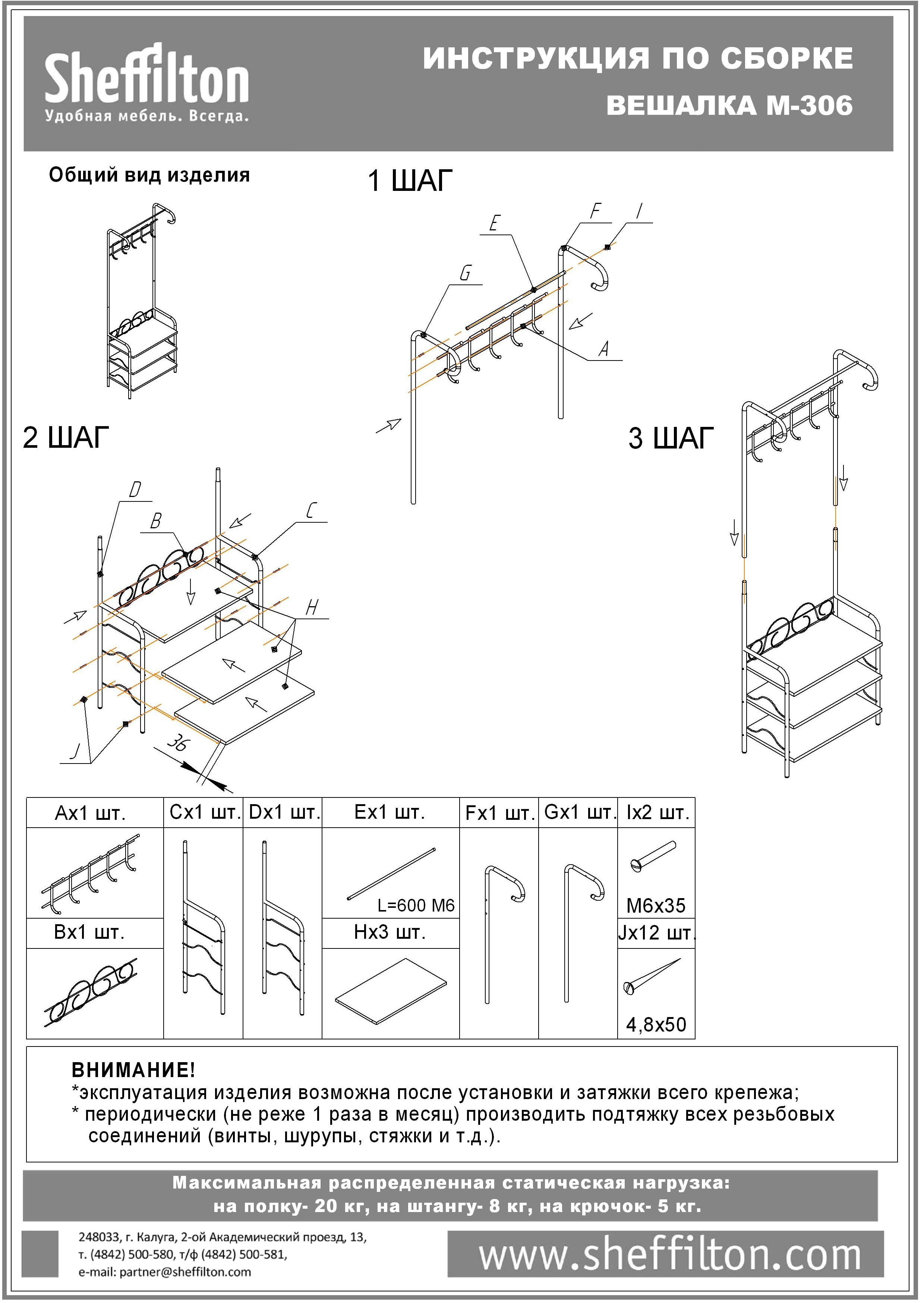 - Максимальная распределенная статическая нагрузка: на полку - 10 кг, на штангу - 8 кг,