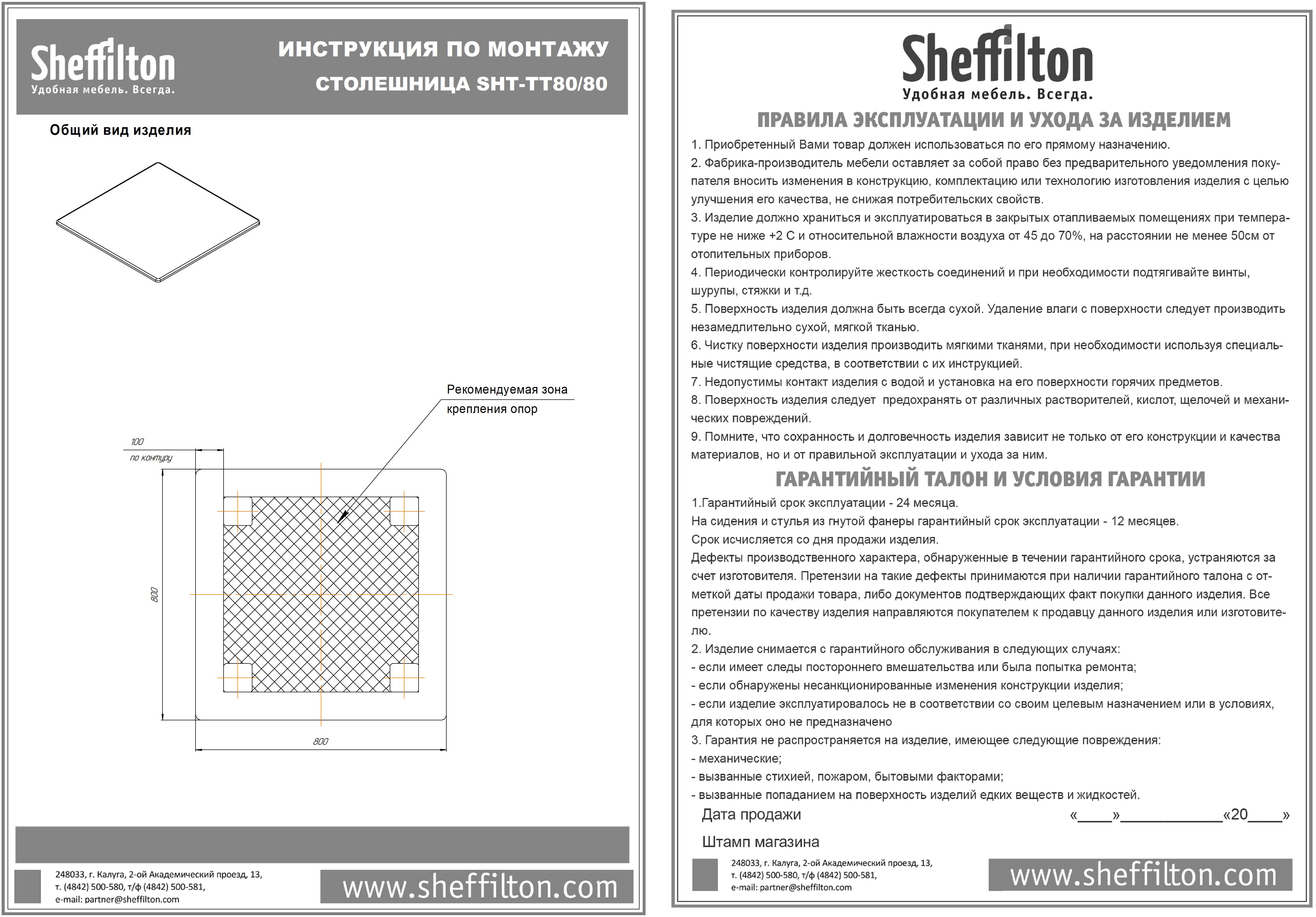 Длина/ширина столешницы 800/800 мм.