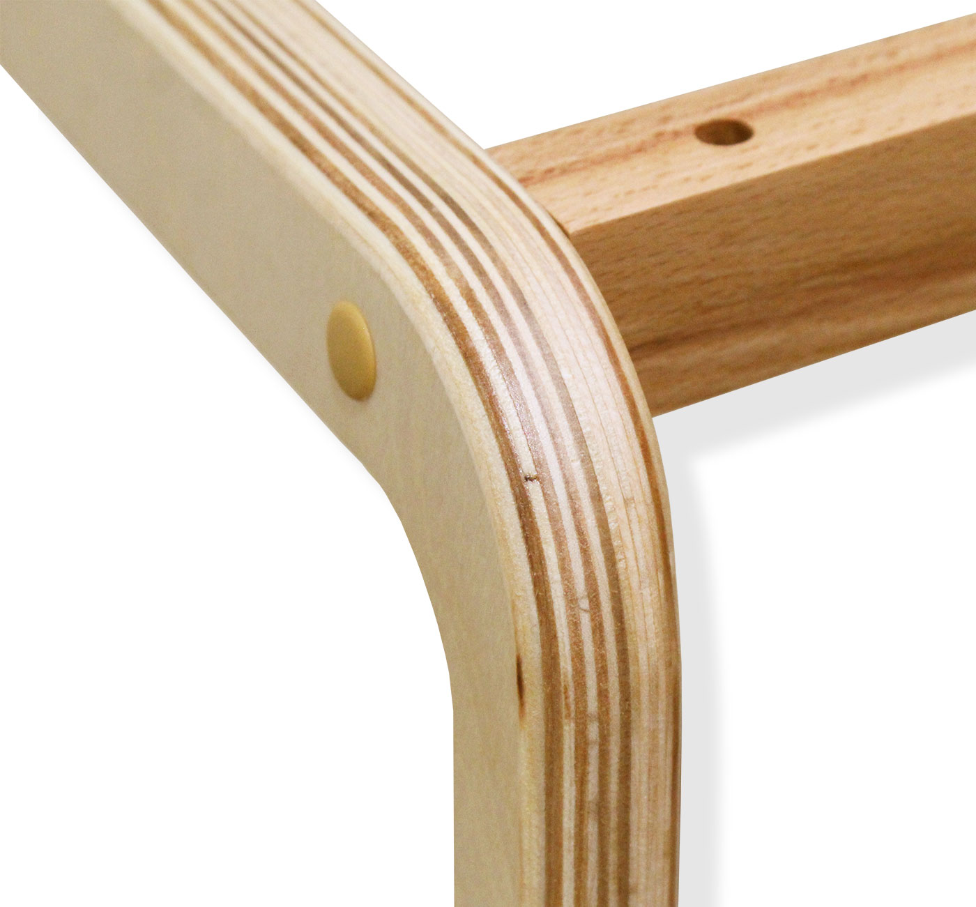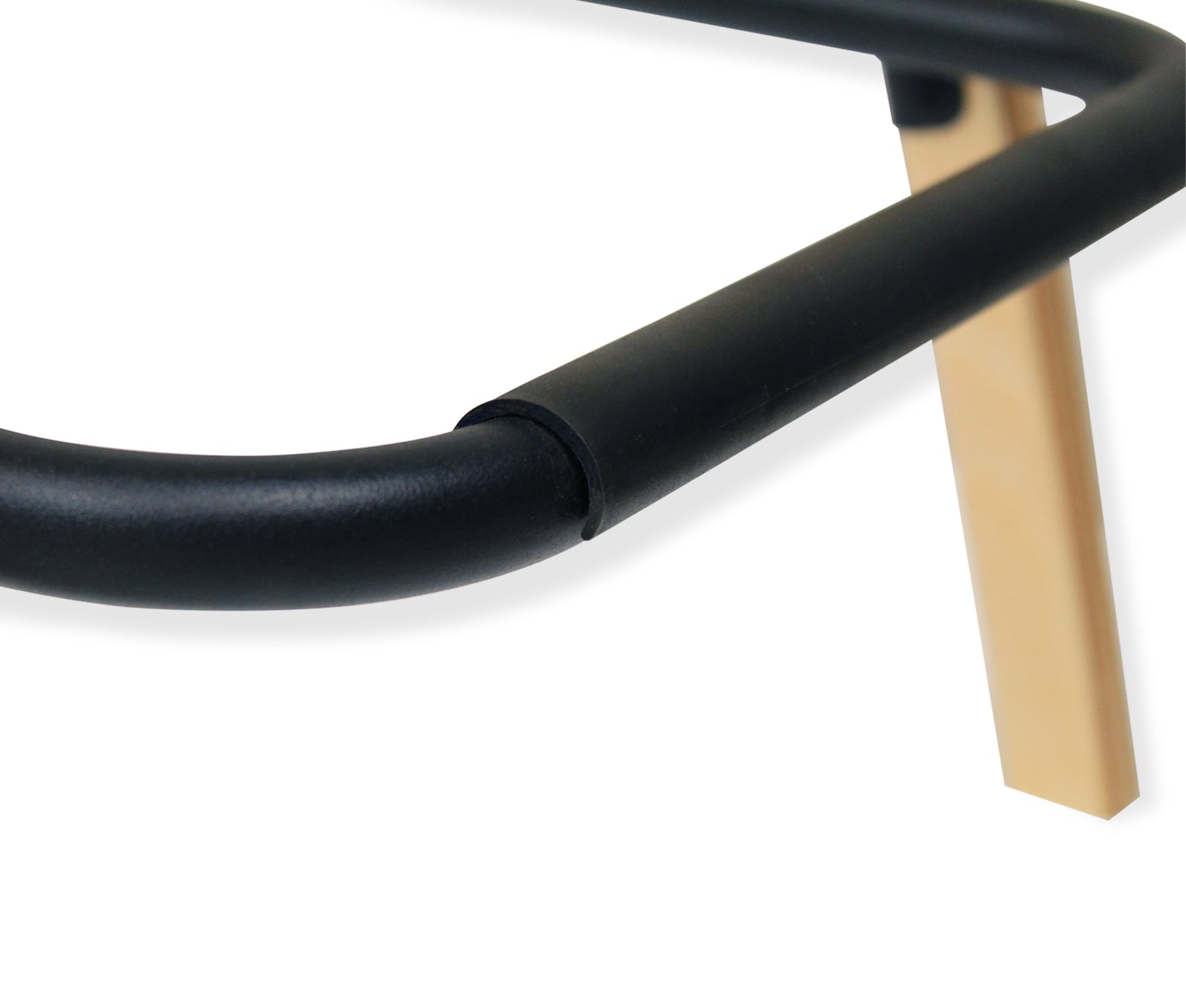 Каркас выполнен из экологически чистых остаточных материалов древесины и массива. Надежная металлическая подножка выполнена из металлической трубы и окрашена порошковой краской, устойчивой к механическому воздействию. Спецальная пластиковая накладка защищает краску на подножке от царапин и сколов при эксплуатации.