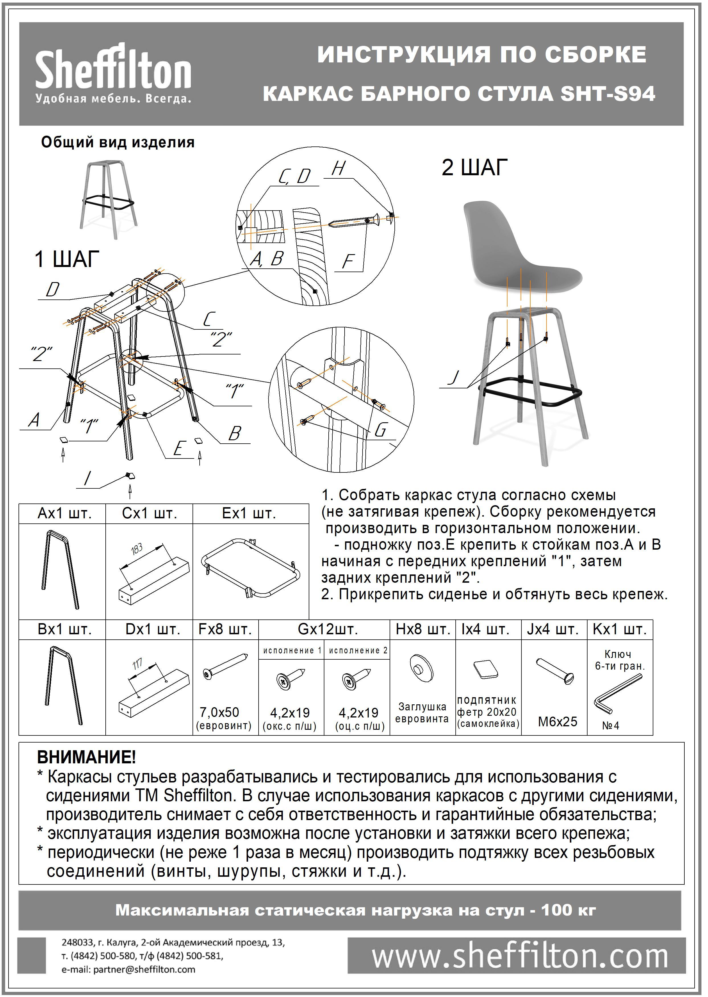Внимание!!! Каркасы стульев разрабатывались и тестировались для использования с сидениями ТМ Sheffilton. В случае использования каркасов с другими сидениями, производитель снимает с себя ответственность и гарантийные обязательства.