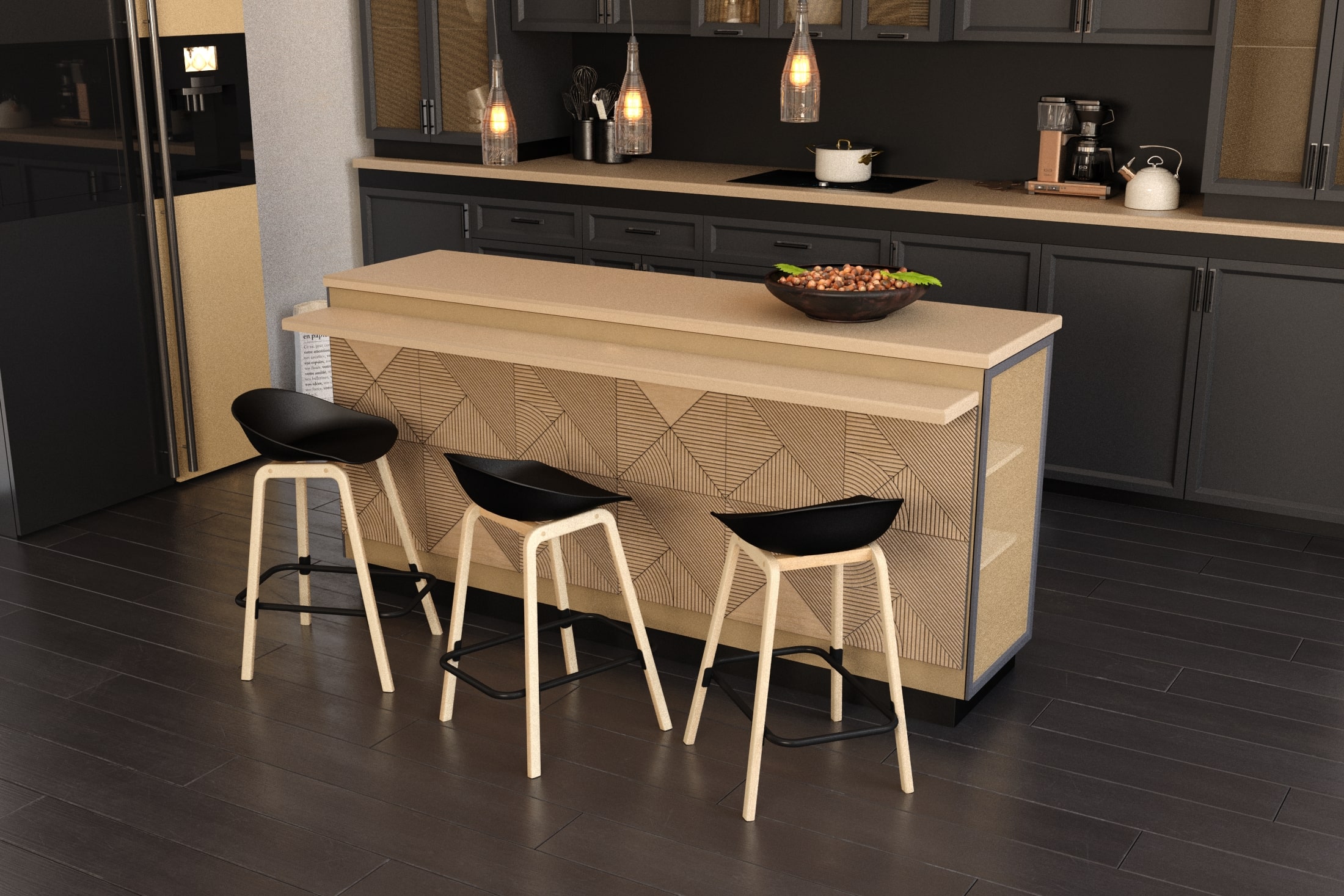 Каркас выполнен из экологически чистых остаточных материалов древесины и массива. Надежная металлическая подножка выполнена из металлической трубы и окрашена порошковой краской, устойчивой к механическому воздействию. Спецальная пластиковая накладка защищает краску на подножке от царапин и сколов при эксплуатации.