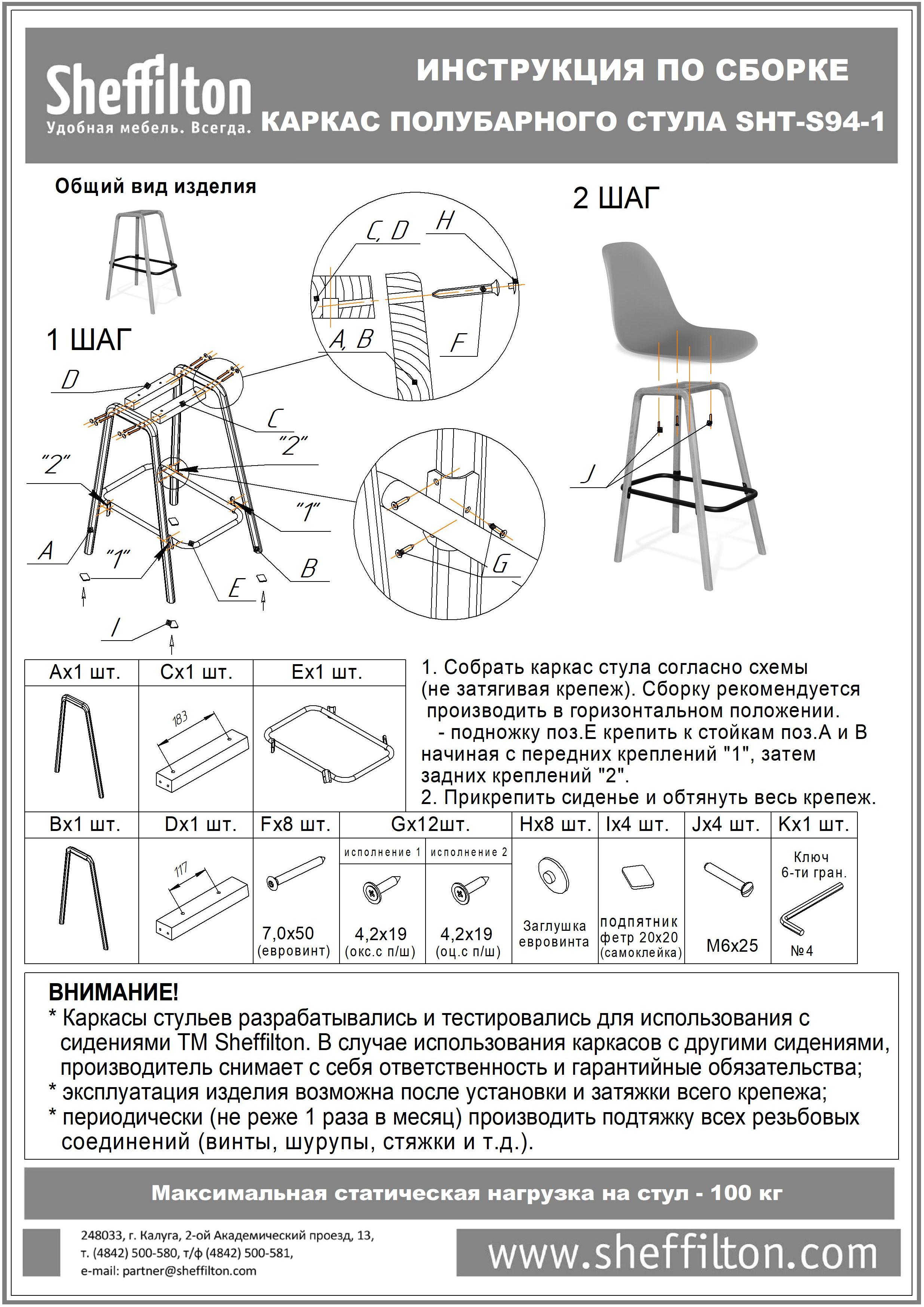 Внимание!!! Каркасы стульев разрабатывались и тестировались для использования с сидениями ТМ Sheffilton. В случае использования каркасов с другими сидениями, производитель снимает с себя ответственность и гарантийные обязательства.