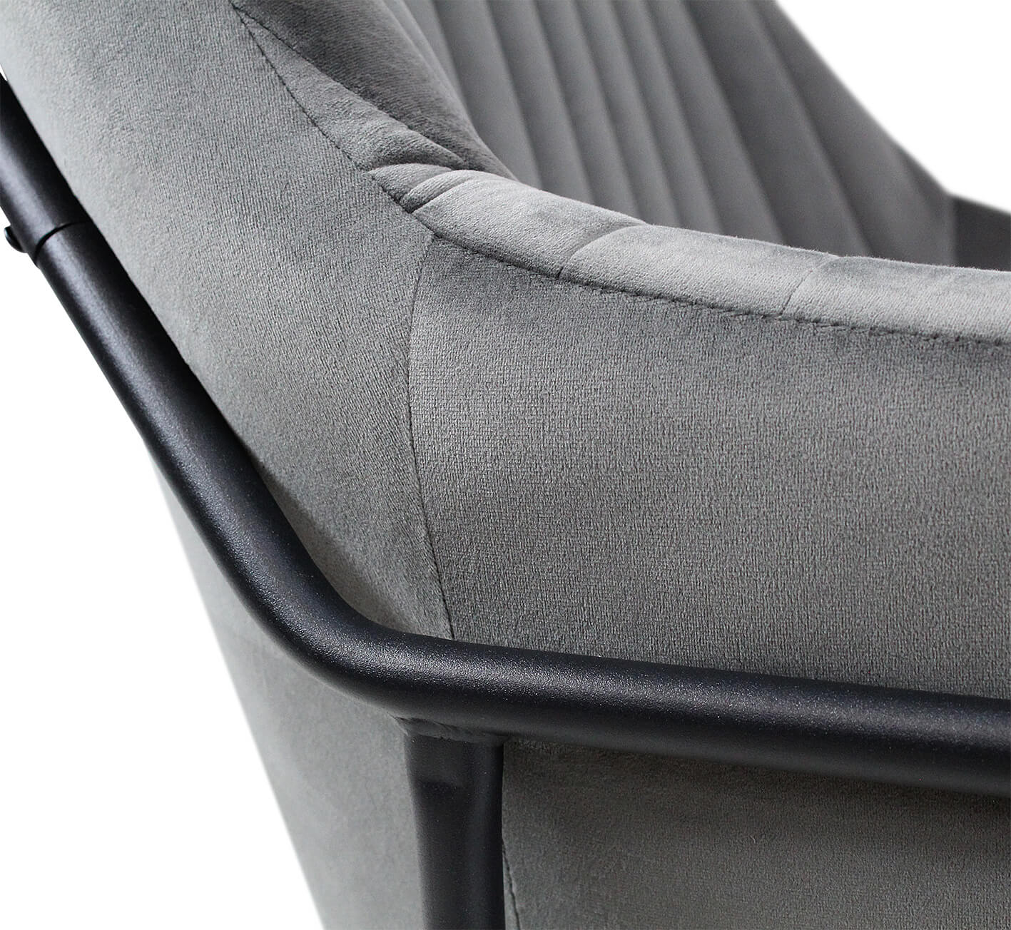 Дизайн модели основан на выдержанной цветовой гамме. Линии металлического каркаса, опоясывающие мягкое сидение, делают дизайн модели особенно стильной. Ножки плавно переходят в подлокотники и спинку, подчеркивая каждый изгиб кресла. Спинка, отклоненная под небольшим углом, и мягкая подушечка на сидении дают еще больший комфорт при использовании.