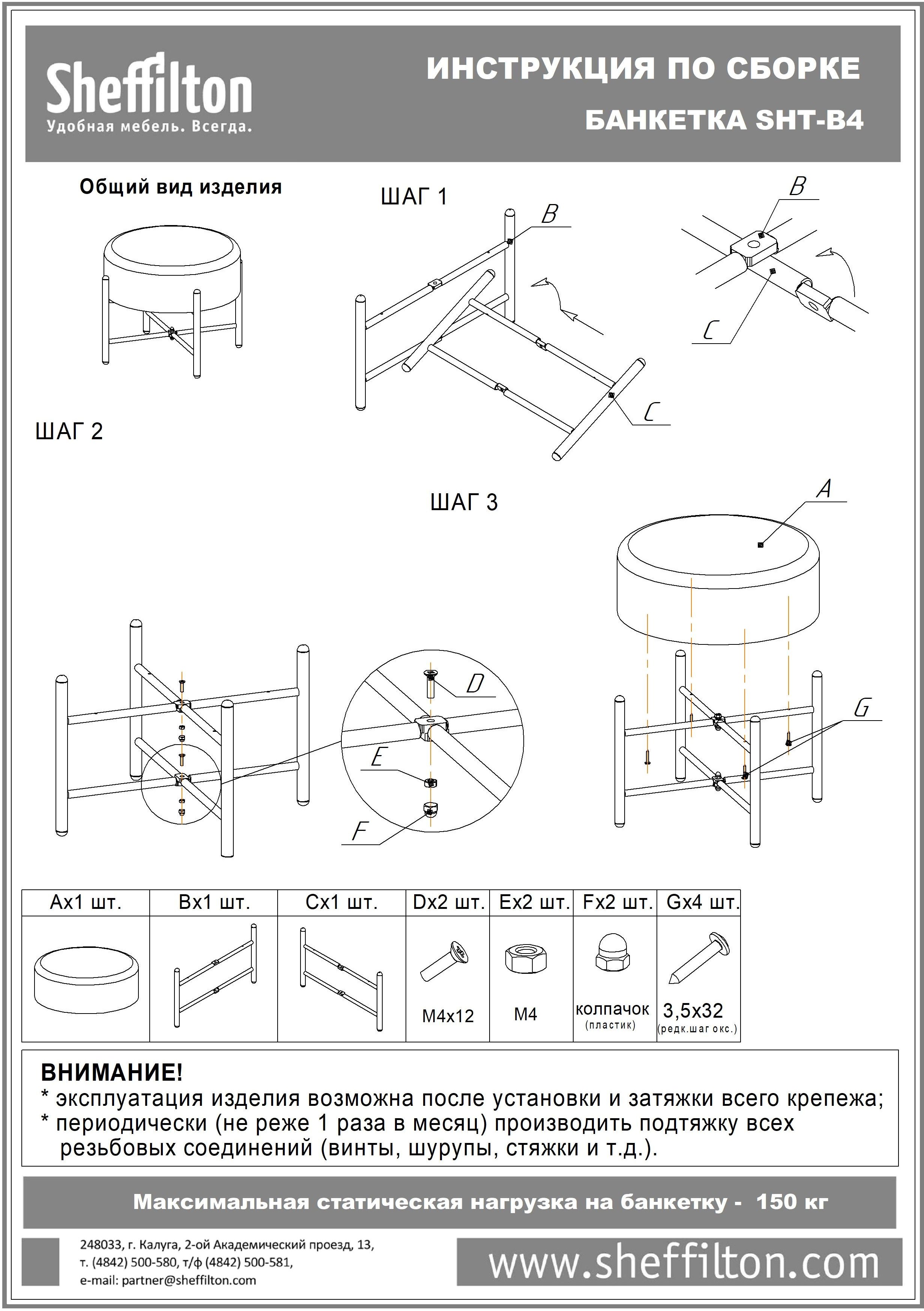 Надежный металлический каркас окрашен порошковой краской, устойчивой к механическому воздействию. Каркас выполнен из трубы. Сидение выполнено из микровелюра с мягким наполнителем.