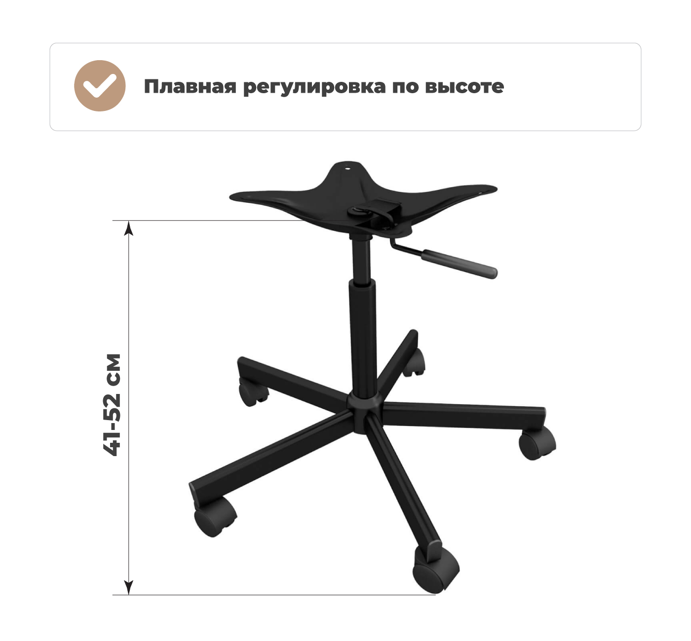 Газлифт позволяет плавно регулировать стул по высоте (415-520 мм), чем обеспечивает комфортное положение любого сидящего человека. Легкость и плавность движения газлифта делают регулировку высоты простой и комфортной.