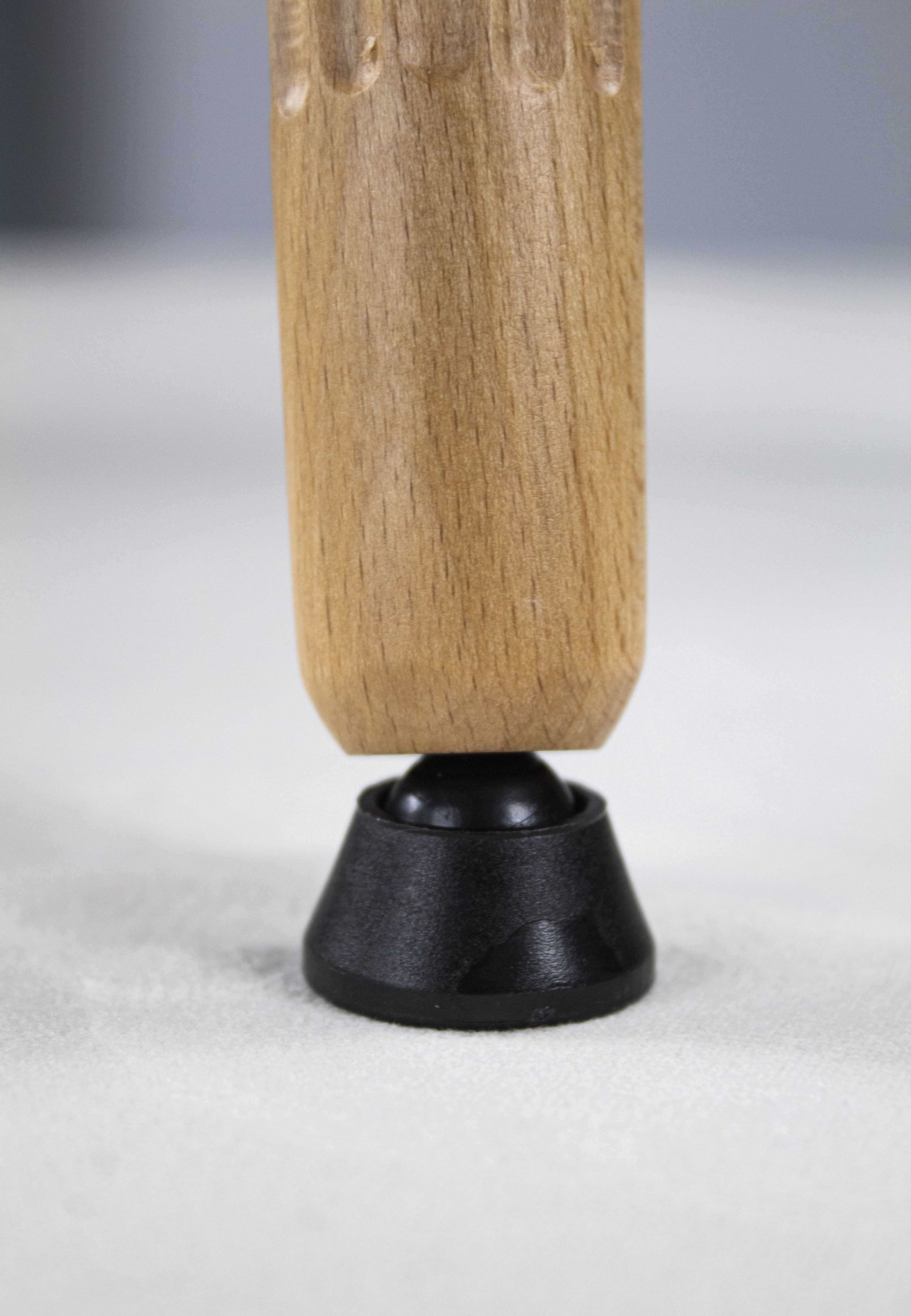 Ножки каркаса дополнены шарнирными подпятниками, регулируемыми по высоте и защищающими пол от механических повреждений. Они позволяют использовать готовый стул даже на неровной поверхности.
