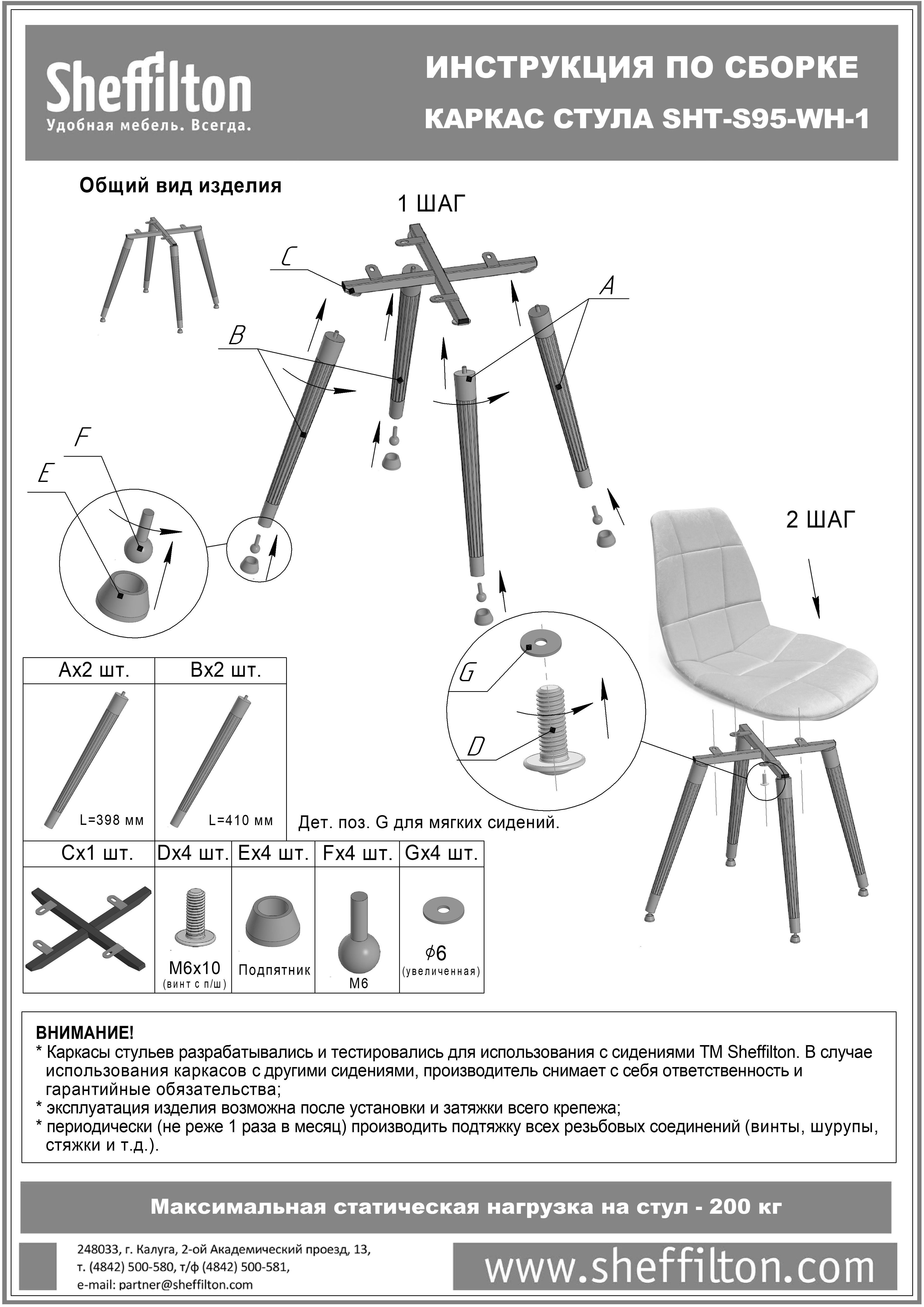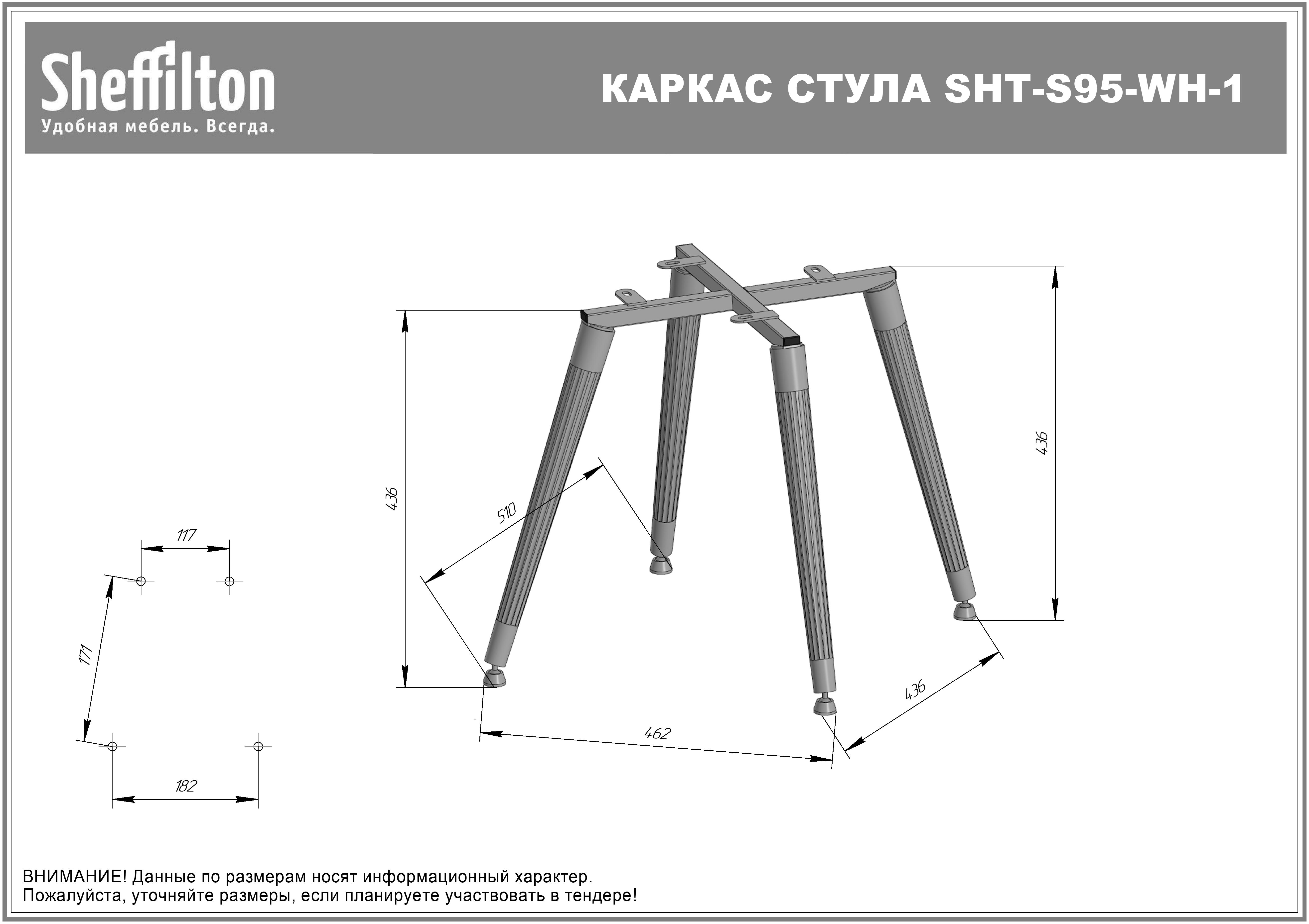 Внимание!!! Каркасы стульев разрабатывались и тестировались для использования с сидениями ТМ Sheffilton. В случае использования каркасов с другими сидениями, производитель снимает с себя ответственность и гарантийные обязательства.
