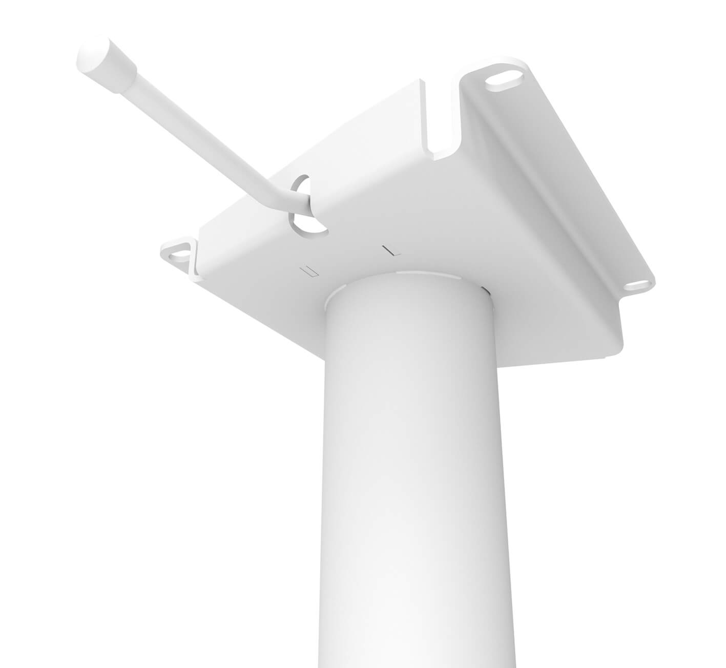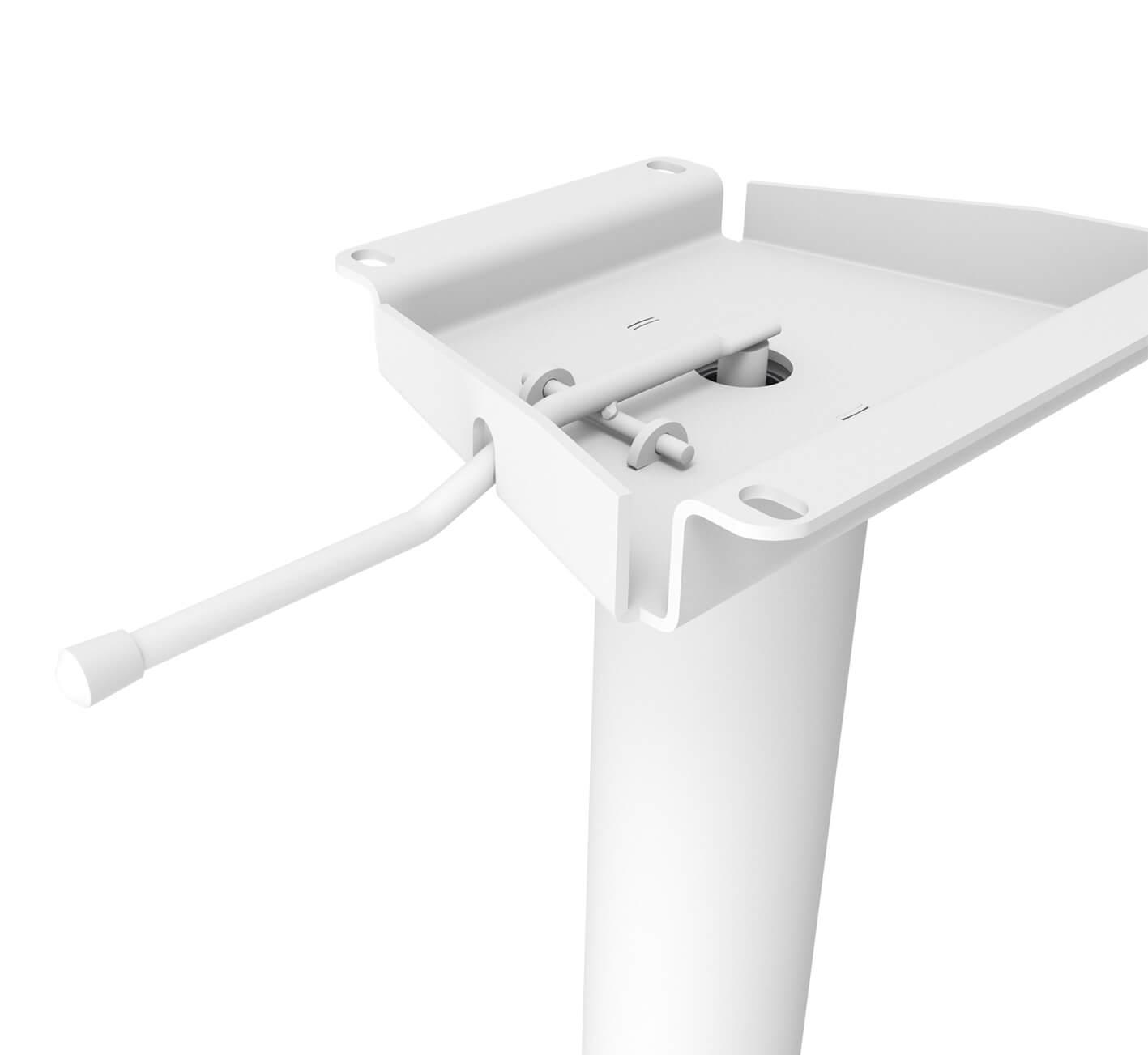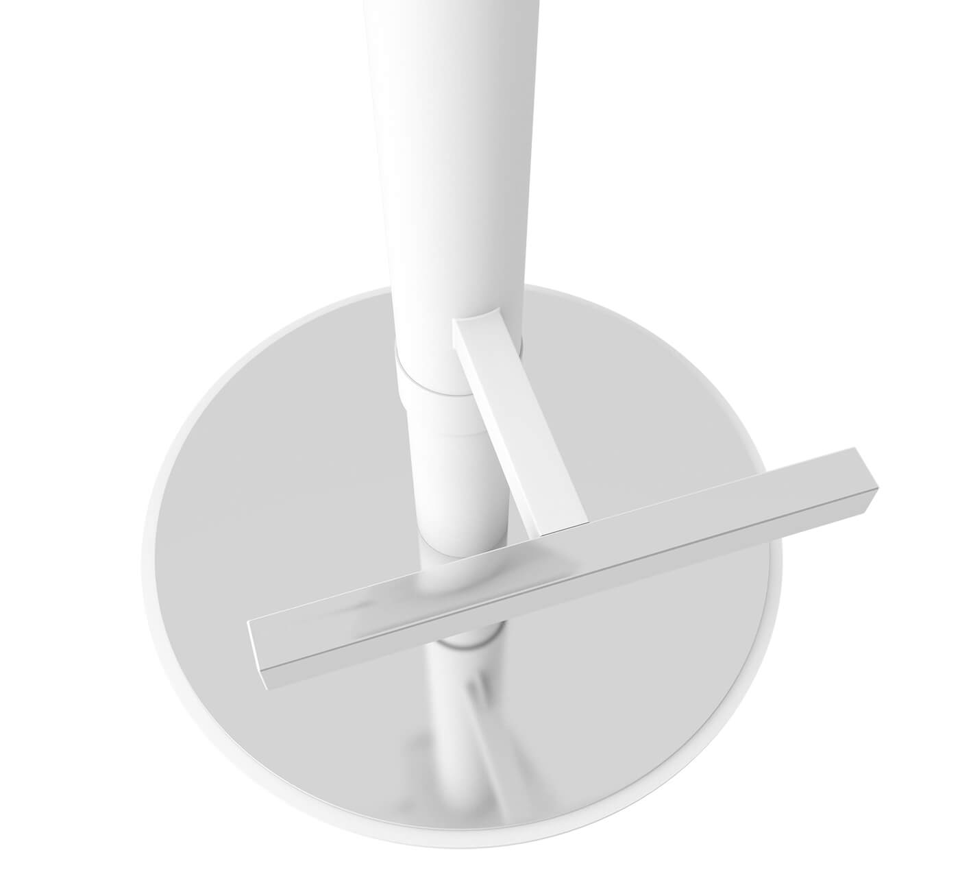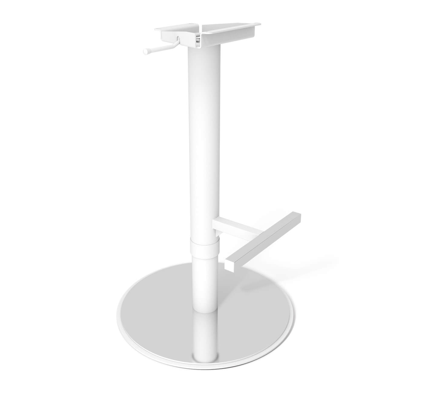 СТИЛЬНЫЙ ДИЗАЙН. Каркас выполнен из металла с белой матовой краской и блестящим гальваническим хромом. Модель располагается на одной высокой ножке цилиндрической формы. Внизу она плавно переходит в основание, сделанное в виде круга.