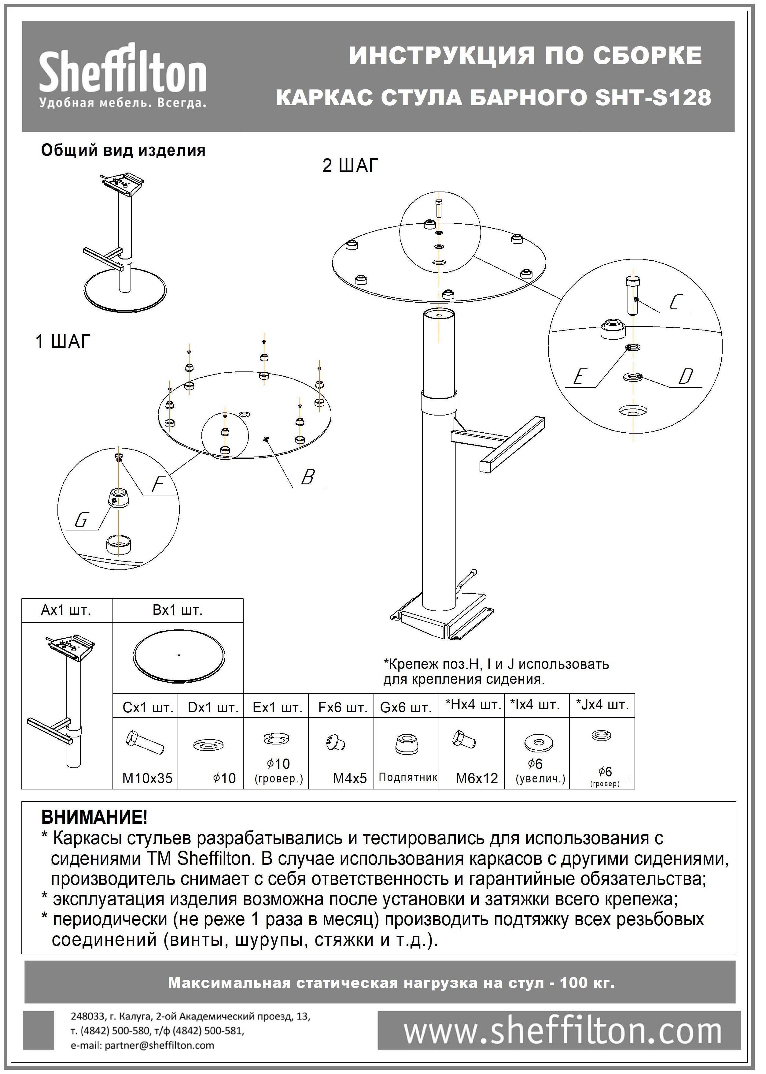 Внимание!!! Каркасы стульев разрабатывались и тестировались для использования с сидениями ТМ Sheffilton. В случае использования каркасов с другими сидениями, производитель снимает с себя ответственность и гарантийные обязательства.