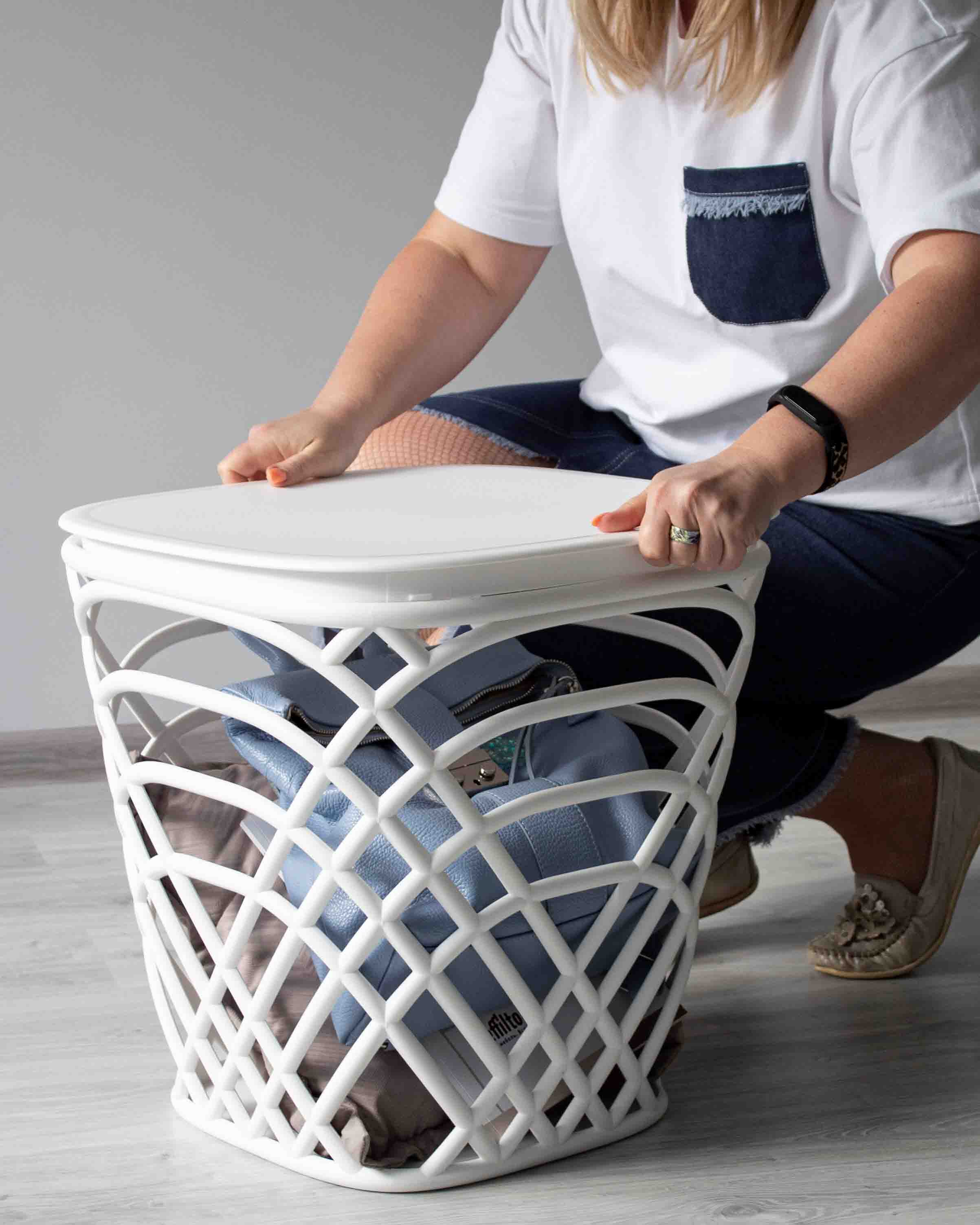 Благодаря своей невысокой высоте, столик легко помещается рядом с диваном или креслом, обеспечивая удобство использования. Столик станет элементом системы хранения вещей. Можете положить в него книги, журналы, подушки, плед и многое другое. На столешнице можно расположить элементы декора. Таким образом, журнальный столик-корзинка помогает держать порядок и создает уютную атмосферу в помещении.