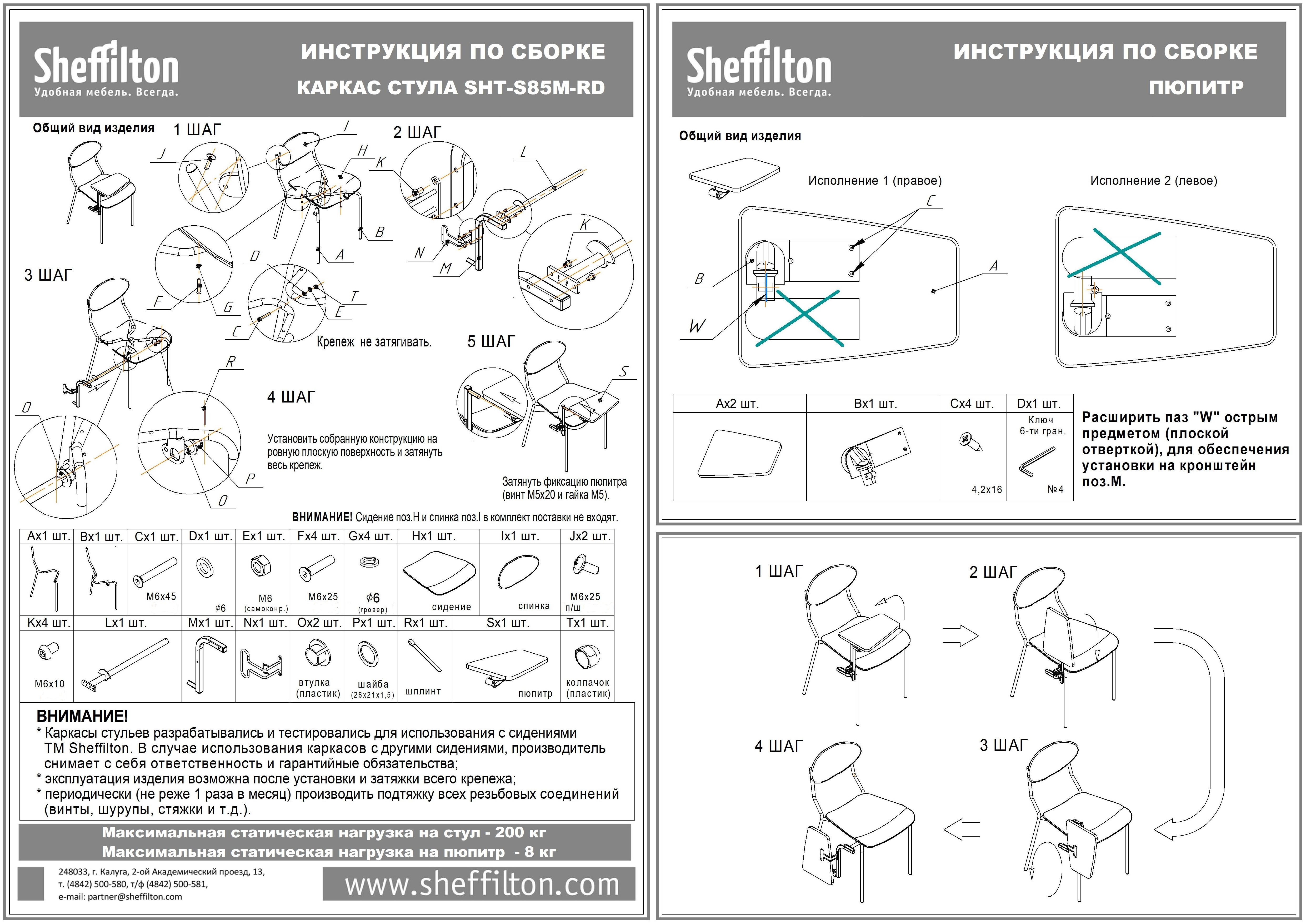 СПЕЦИАЛЬНЫЕ ПОДПЯТНИКИ каркаса обеспечивают защиту покрытия от царапин и повышают устойчивость стула. К каркасу приложен комплект крепежа и схема сборки.