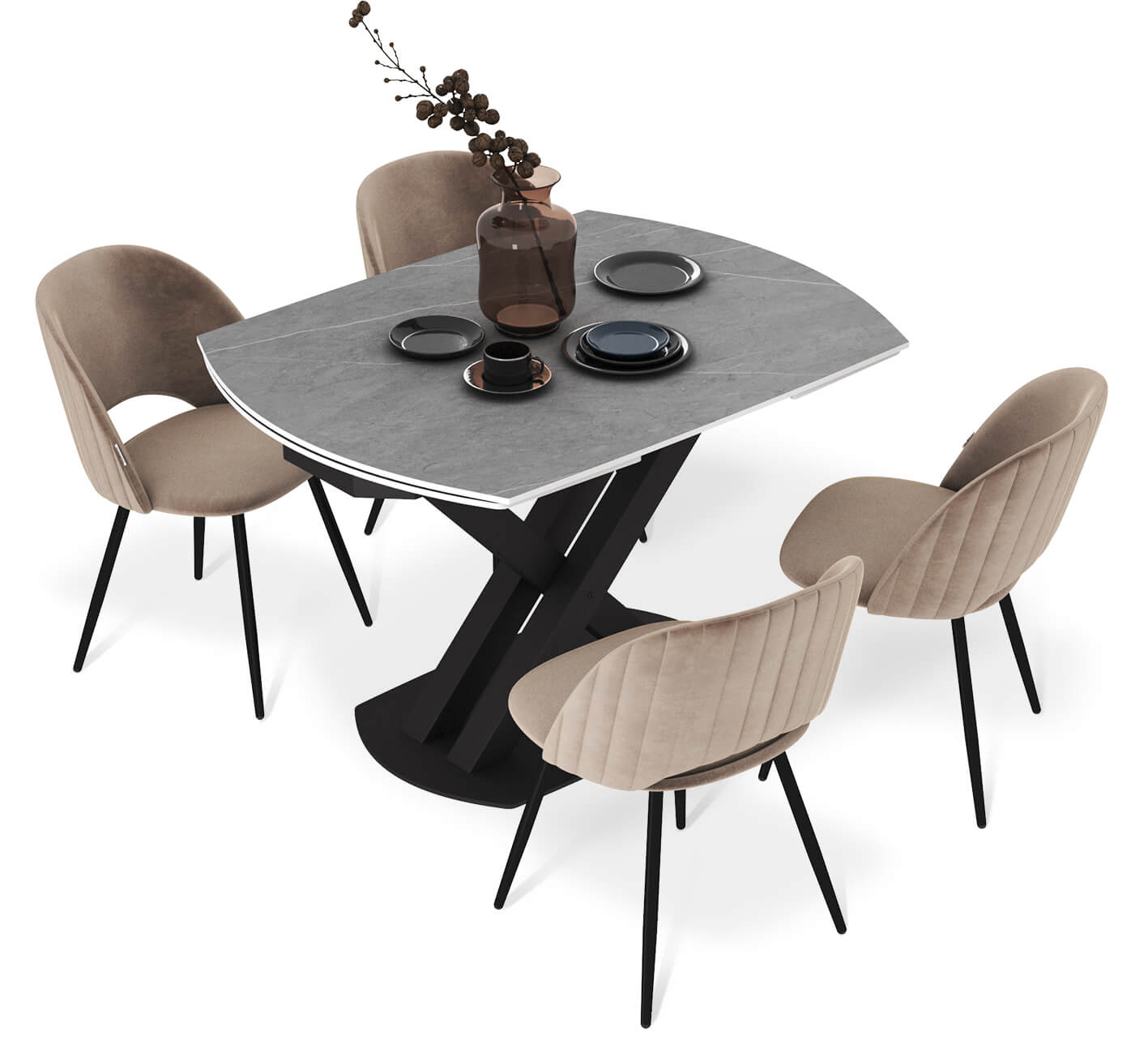 Стулья, в свою очередь, прекрасно дополняют обеденную группу и делают её визуально воздушной за счёт своего практичного и современного дизайна.