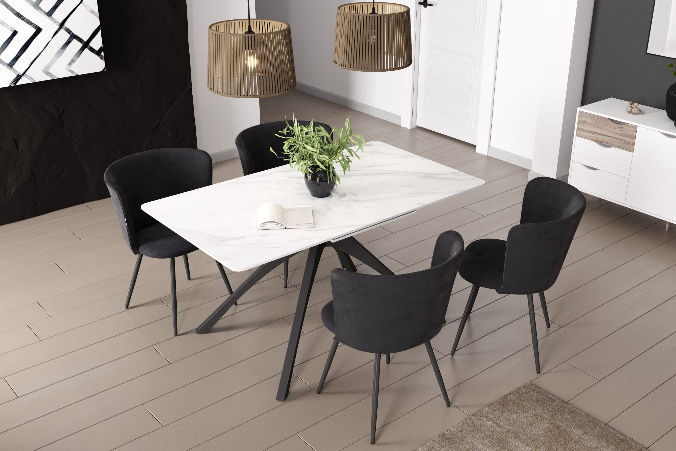 Стулья, в свою очередь, прекрасно дополняют обеденную группу и делают её визуально воздушной за счёт своего практичного и современного дизайна.