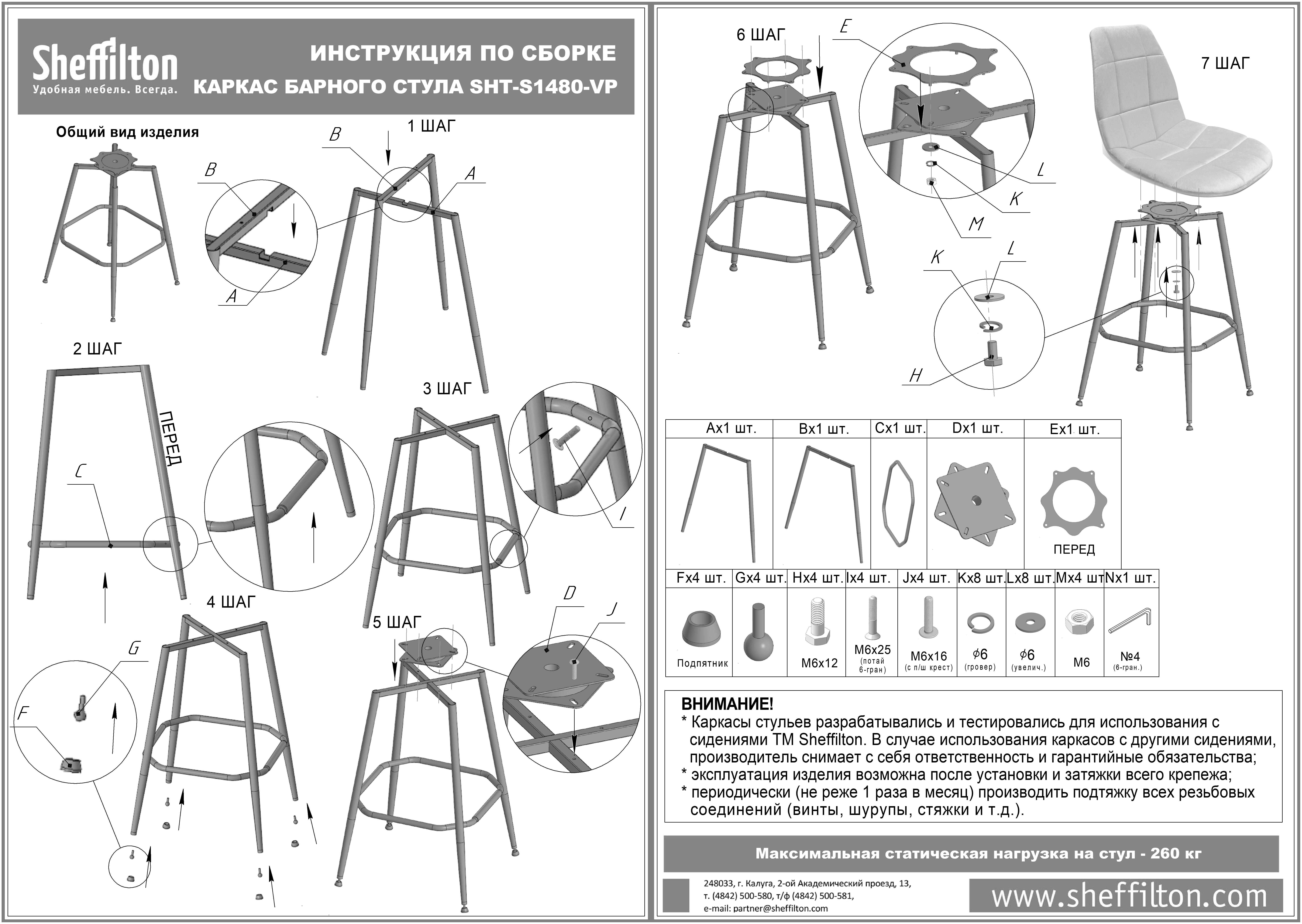 Внимание!!! Каркасы стульев разрабатывались и тестировались для использования с сидениями ТМ Sheffilton. В случае использования каркасов с другими сидениями, производитель снимает с себя ответственность и гарантийные обязательства.