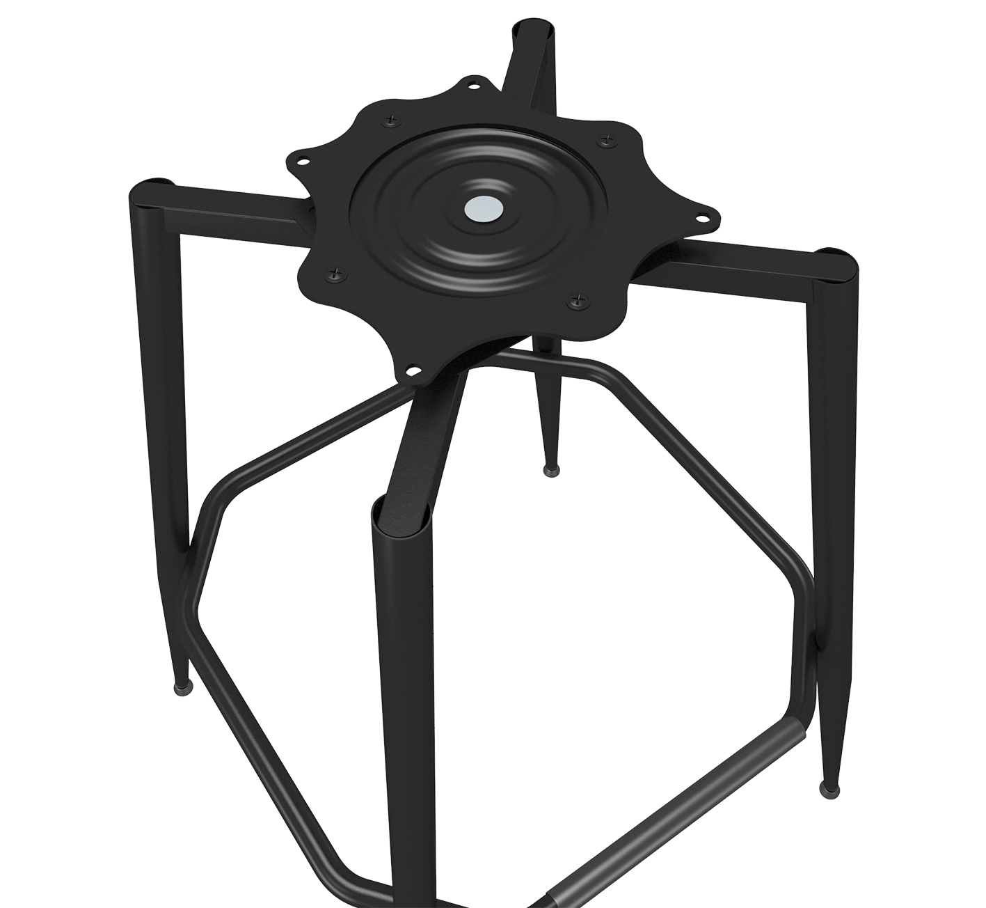Оригинальную нотку барному каркасу придают конусообразные ножки. Отличительной особенностью этого каркаса является возвратно-поворотный механизм, который сделает стул с таким каркасом не только стильным, но и комфортным в использовании.