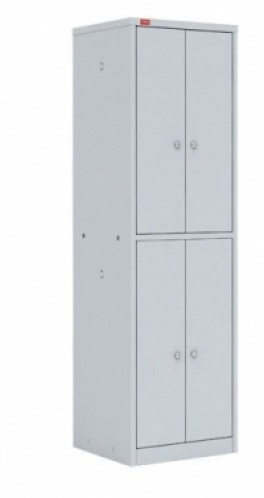 Шкаф разборный металлический двухсекционный с 4-мя отделениями. В каждой секции: одна полка. Двери с индивидуальным врезным замком. Шкаф предназначен для хранения архивов, офисной и бухгалтерской документации. Полимерное порошковое покрытие светло-серого цвета (RAL 7035). Возможна установка регулируемых опор (в комплект не входят).