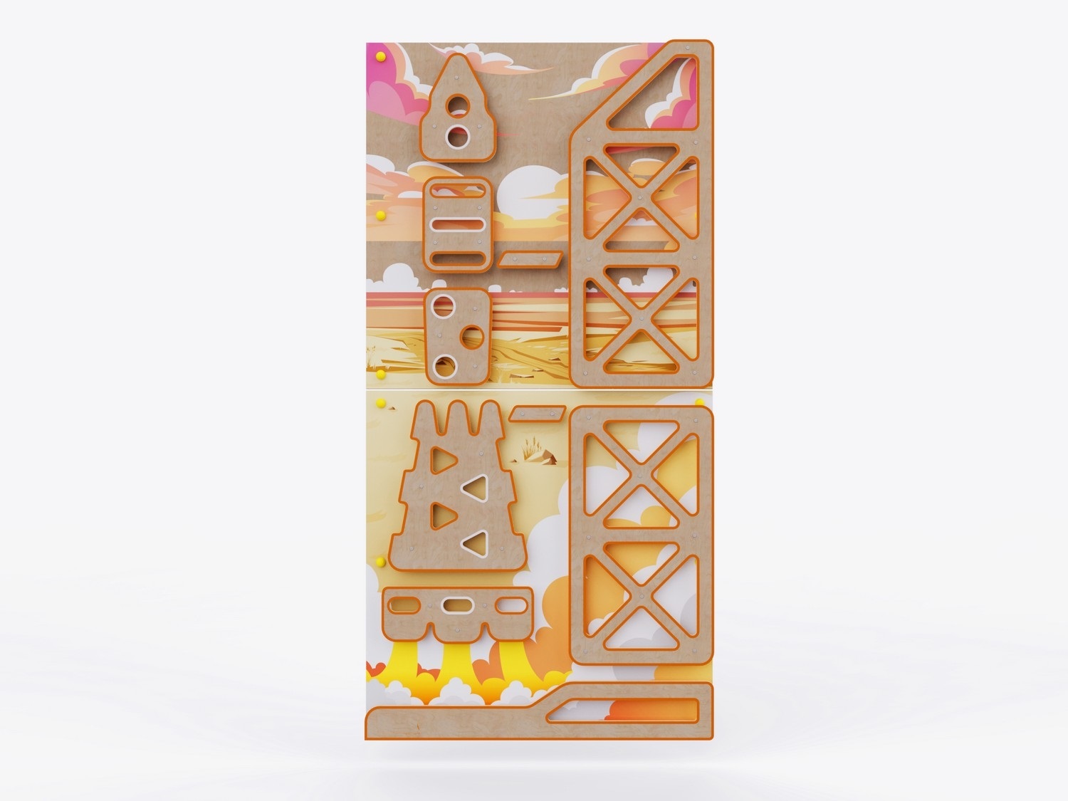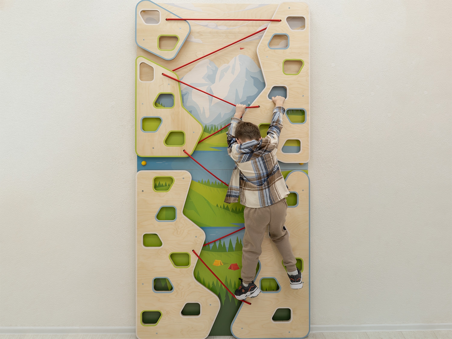 Все отверстия для опоры в скалодромах расположены с учетом ширины детской стопы, длины шага и веса ребенка. Скругленные углы элементов скалодрома предупреждают возможные травмы. Надежная конструкция выдержит самые активные игры малышей: каждый скалодром успешно прошел испытание на прочность под весом взрослого человека, поэтому подходит для игр двух детей одновременно.