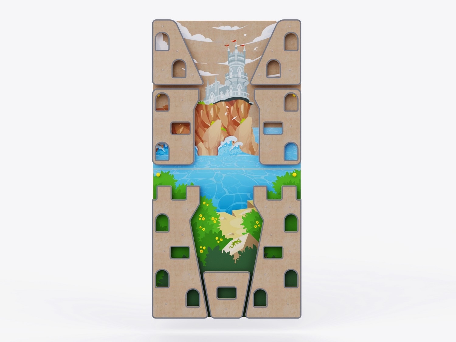 Все отверстия для опоры в скалодромах расположены с учетом ширины детской стопы, длины шага и веса ребенка. Скругленные углы элементов скалодрома предупреждают возможные травмы. Надежная конструкция выдержит самые активные игры малышей: каждый скалодром успешно прошел испытание на прочность под весом взрослого человека, поэтому подходит для игр двух детей одновременно.