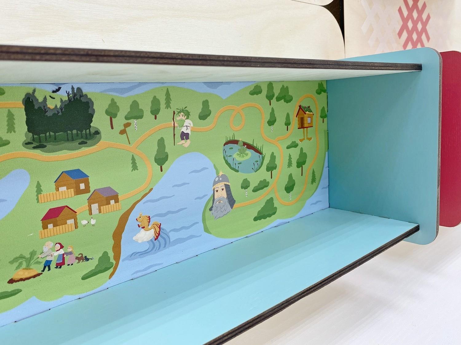 - Полки для выставочных материалов – 3 шт. (знакомят с народными сказками и орнаментами вышивки).