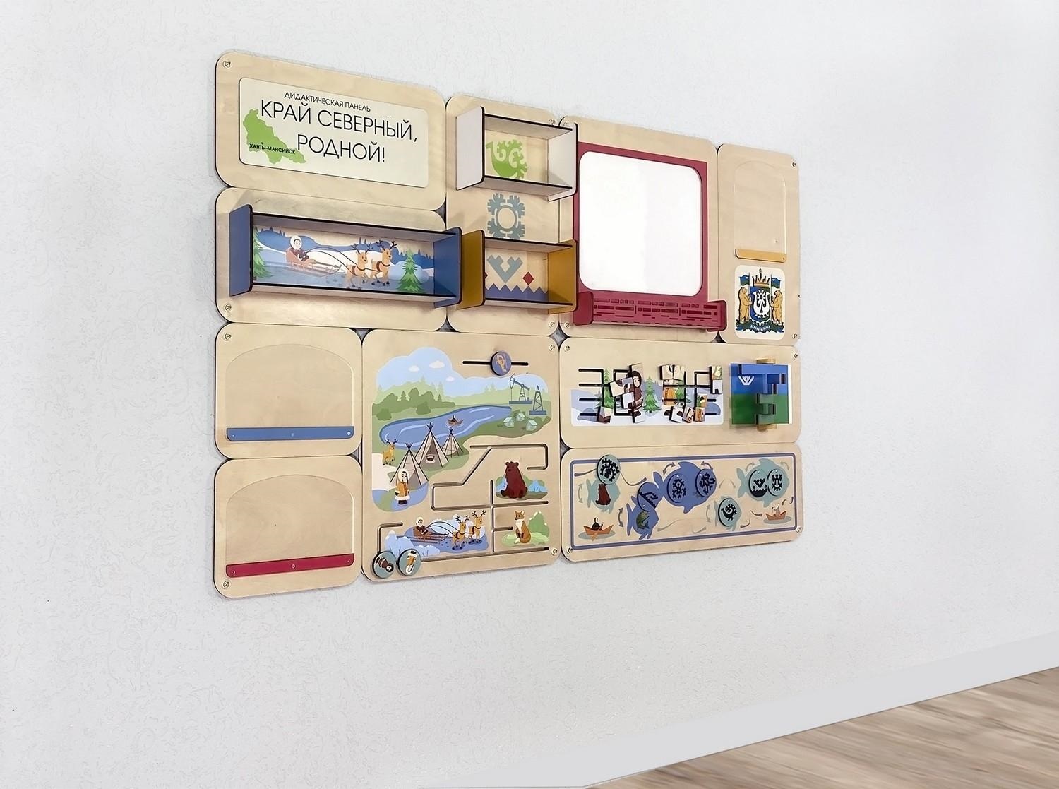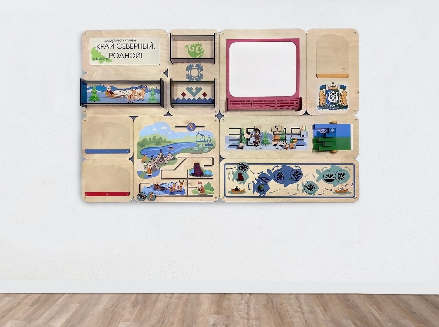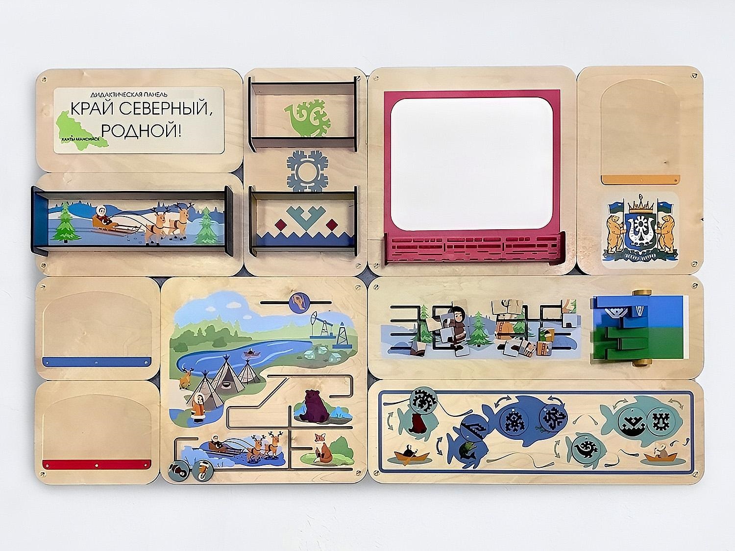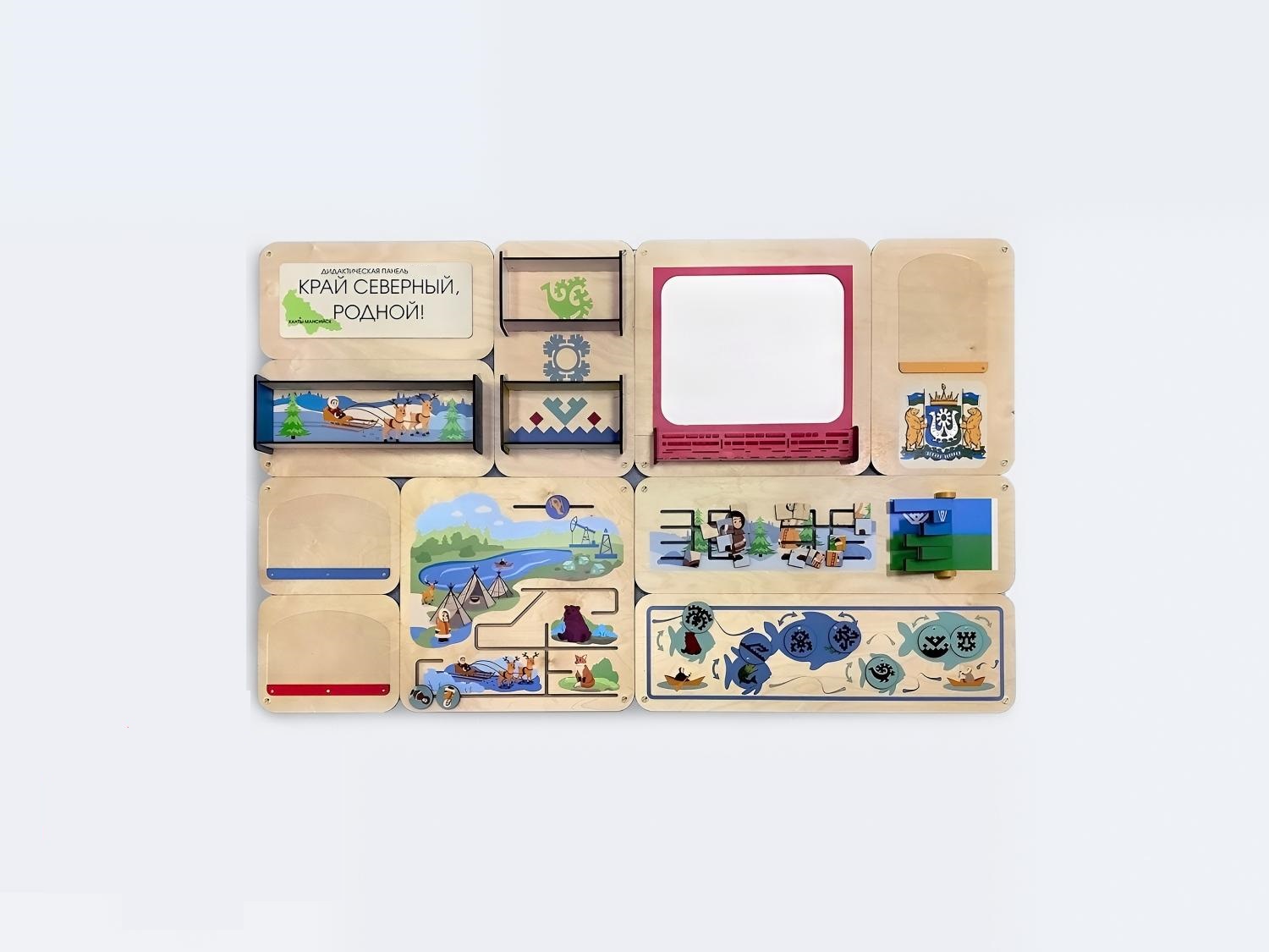 - Занятия с панелью «Край северный, родной.ХМАО» нацелены познакомить детей с их малой родиной - Ханты–Мансийским автономным округом. Дети смогут в игровой форме познакомиться с культурой, традициями, обычаями, окружающим миром, символикой, коренным народом. Разработаны игры на мелкую моторику, логическое мышление и внимание.
