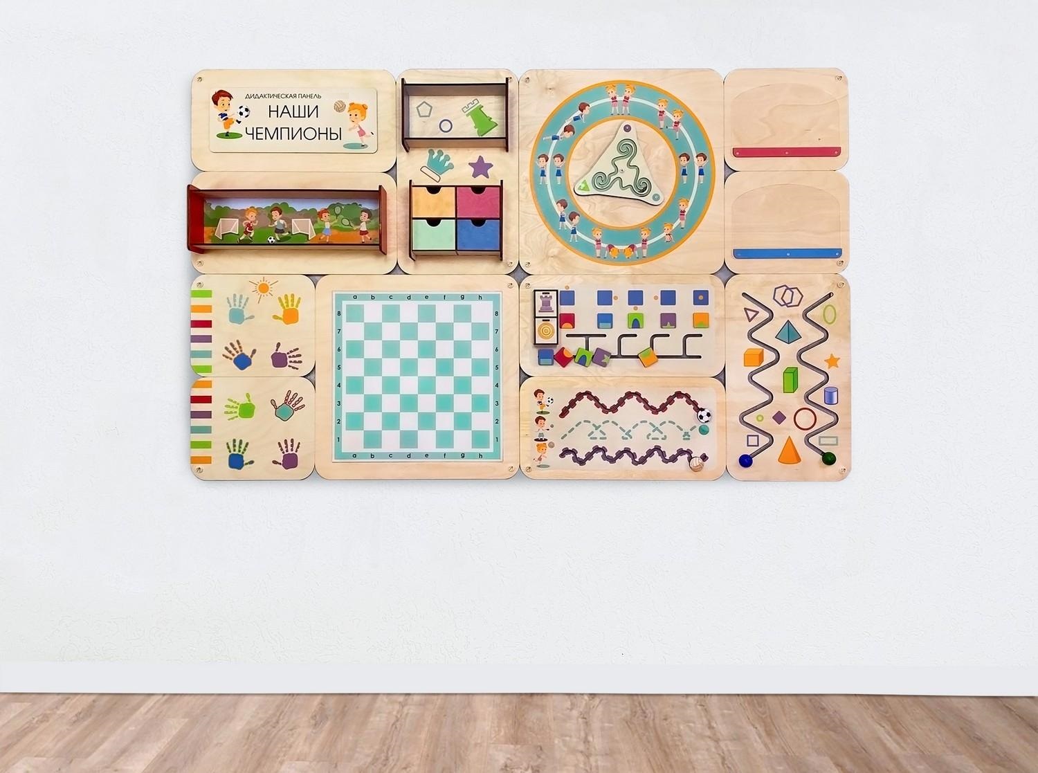 - Дети развивают физическое здоровье и готовятся к школе в лёгкой игровой форме. Занятия с панелью «Наши чемпионы» улучшают координацию движений, крупную и мелкую моторику, развивают логическое мышление.