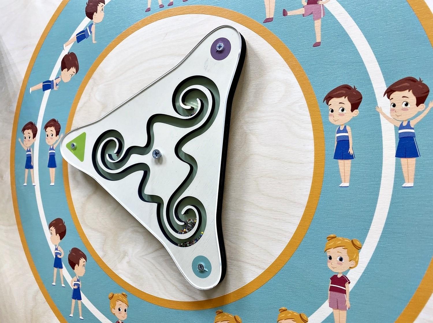 - Лабиринт «Собери фигуру» тренирует внимание, знание фигур и цветов