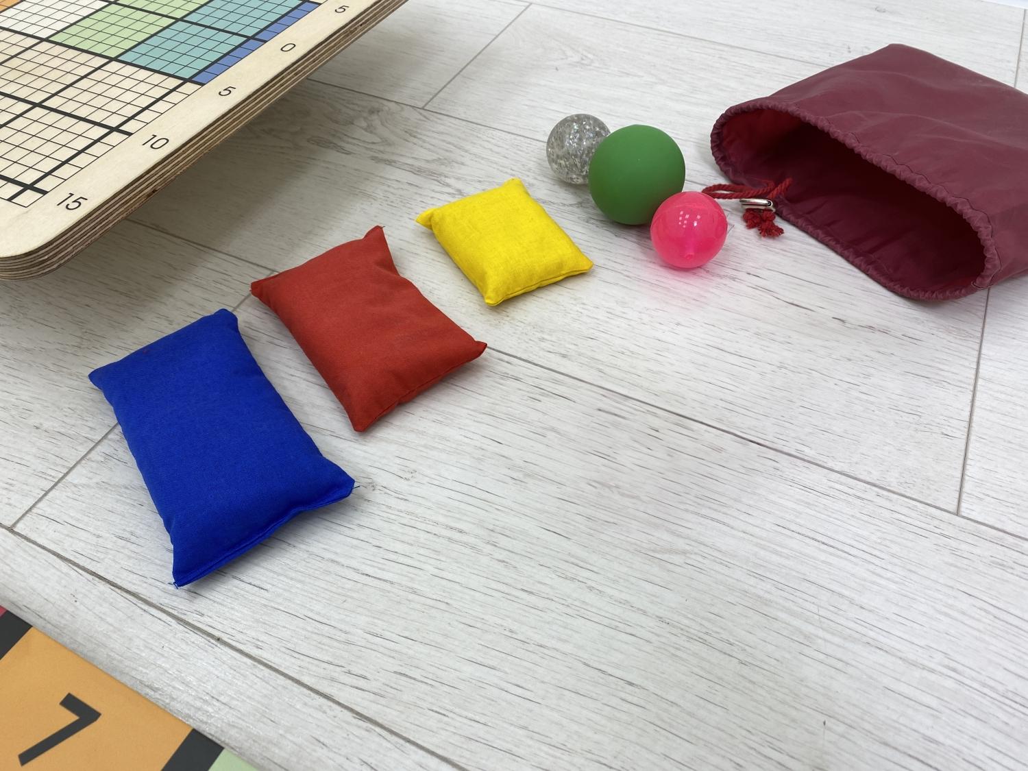 - Комплект кинезиологических мячей-прыгунов (1 простой + 1 с креплением на шнурке к поясу)