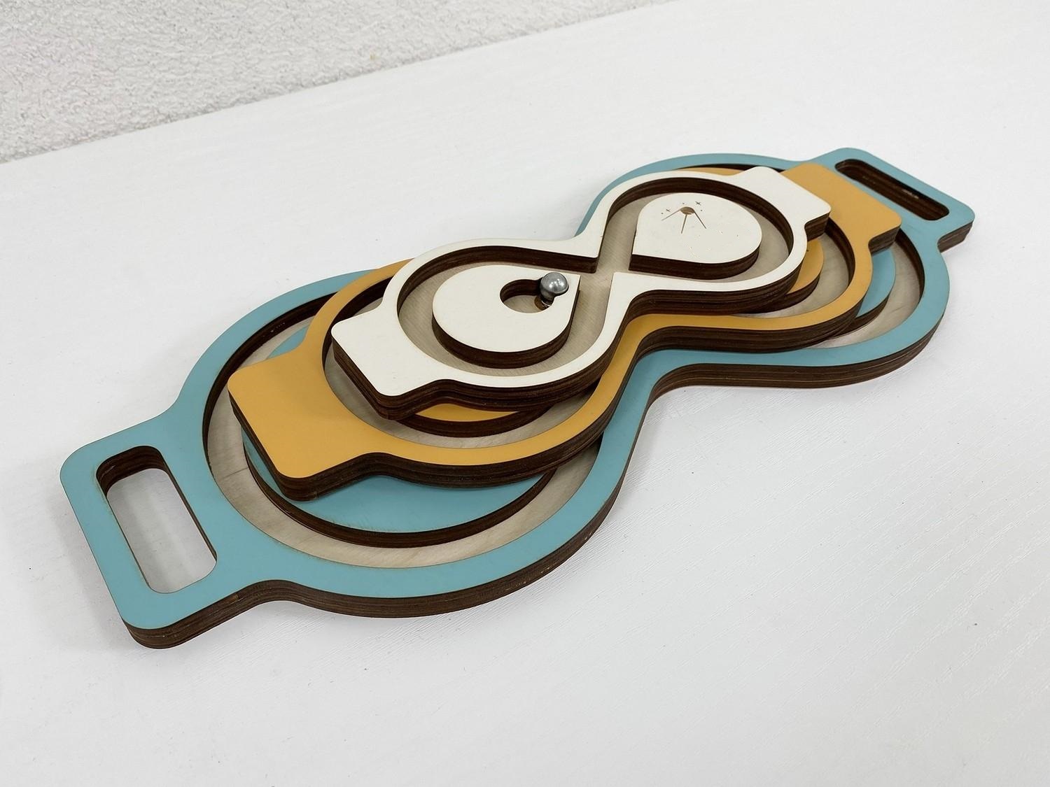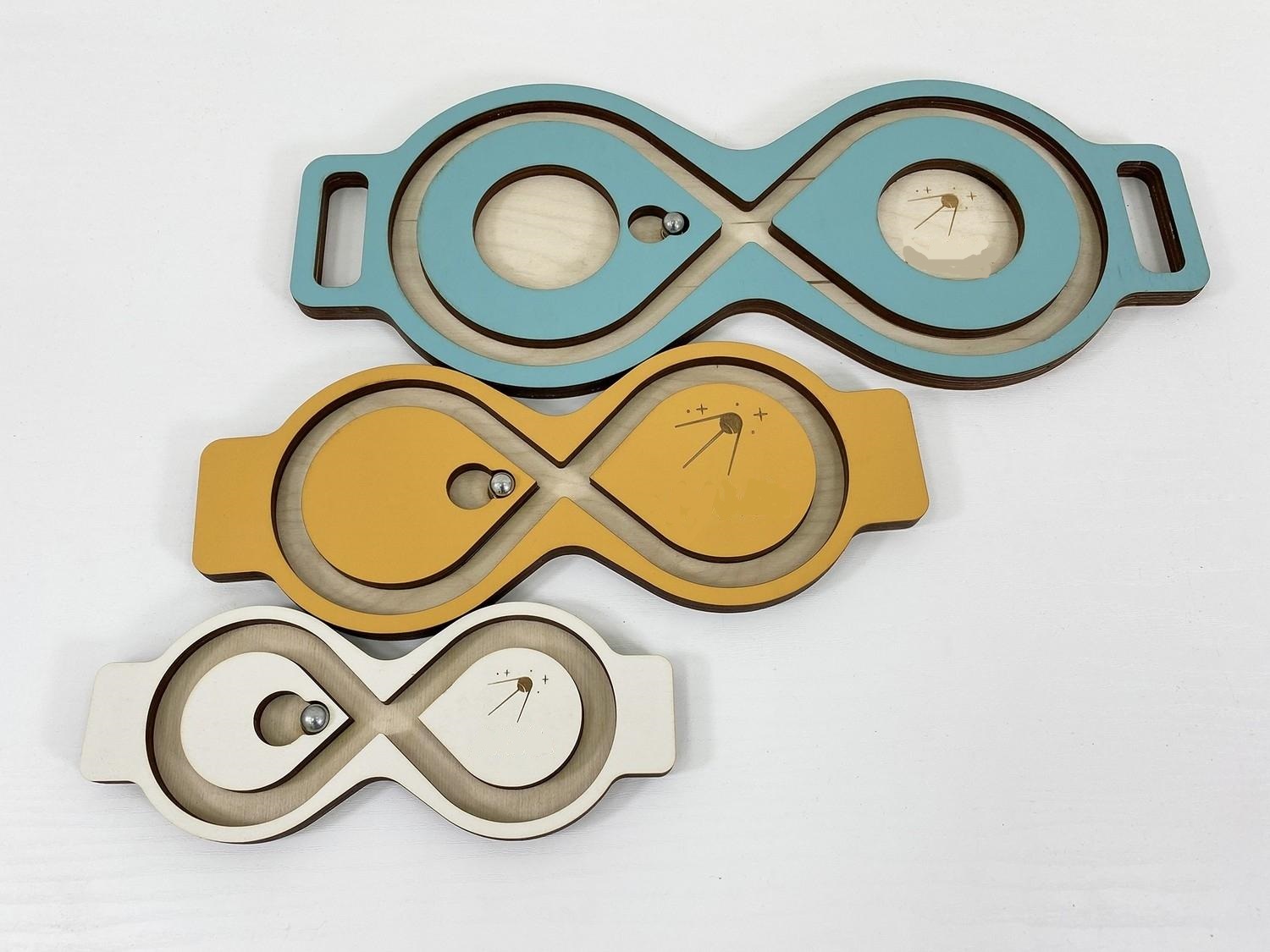 Балансир-лабиринт для развития мозга и снятия эмоционального напряжения. Представляет собой положенную набок восьмёрку с металлическим шариком, который можно катать, наклоняя лабиринт в разные стороны.