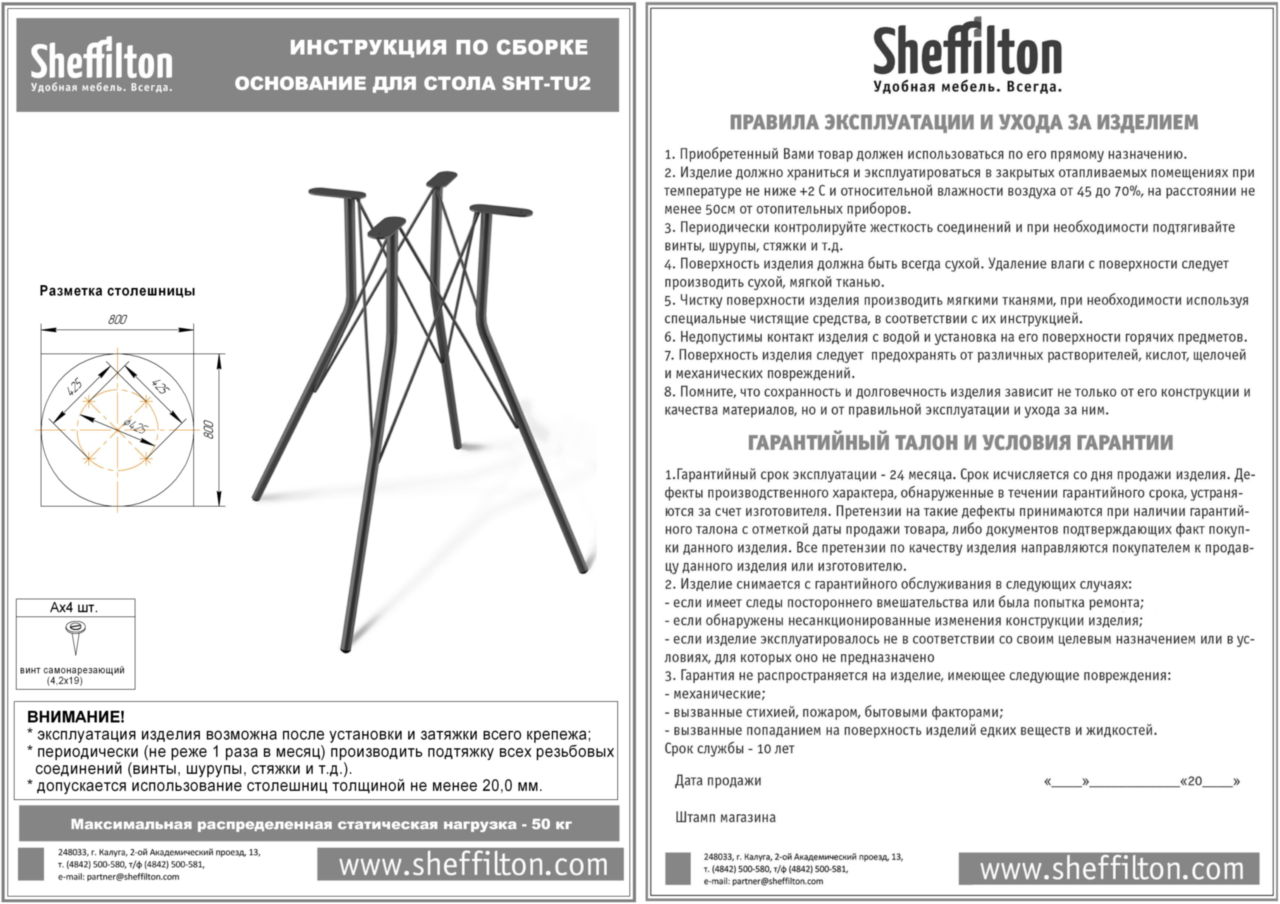 Максимальная статическая нагрузка на стол 50 кг.