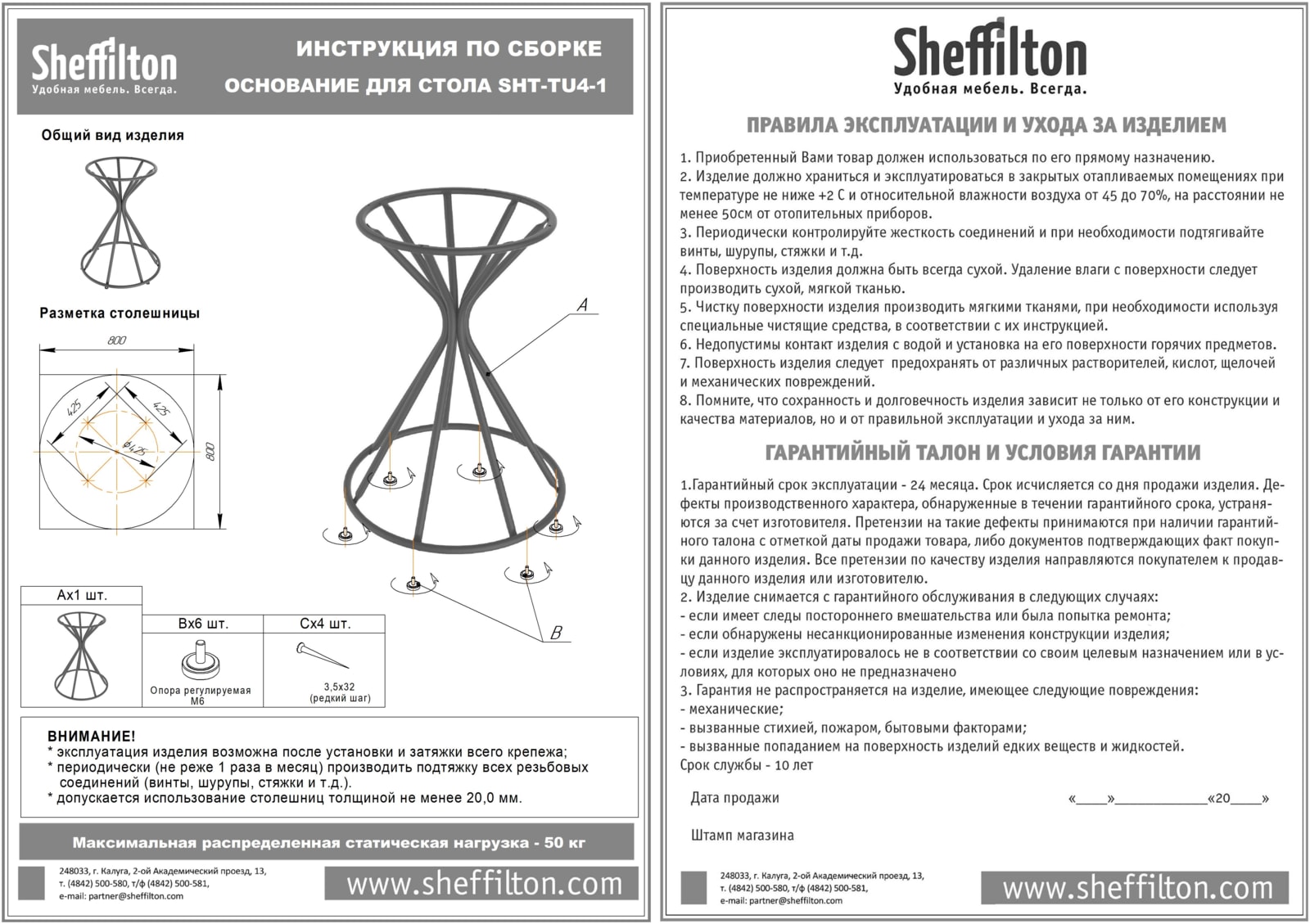 В основе лежит фанерная плита, к которой Вы можете прикрепить любое подстолье Sheffilton в разделе "Собери свой стол".
