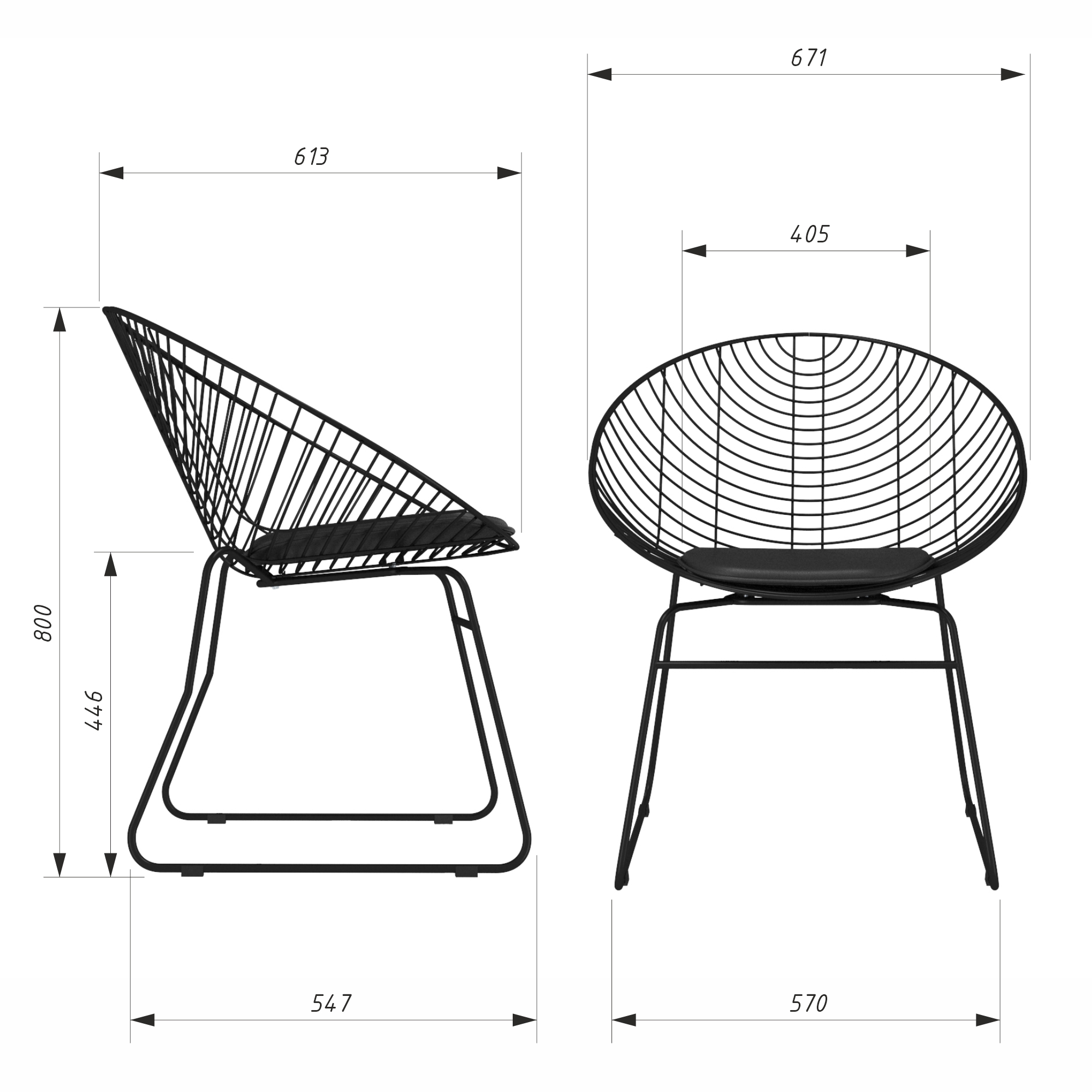 Каркас стула выполнен из прутка 12 мм, внешний пруток сидения 5 мм, внутренняя сетка 4,5 мм. Надежный металлический каркас всего стула окрашен порошковой краской, устойчивой к механическому воздействию.