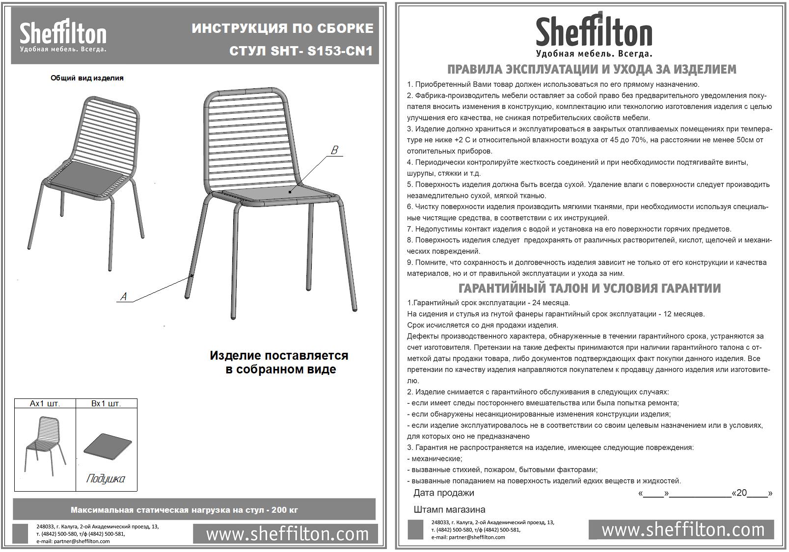 Максимальная статическая нагрузка на стул - 200 кг.
