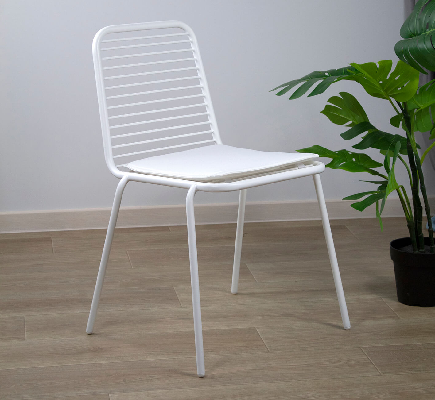 Надежный металлический каркас всего стула окрашен порошковой краской, устойчивой к механическому воздействию. Подушка выполнена из водонепроницаемой полиэфирной ткани, которая обеспечивает повышенную прочность материала, стойкость к истиранию, разрывным нагрузкам, не выцветает от стирок.