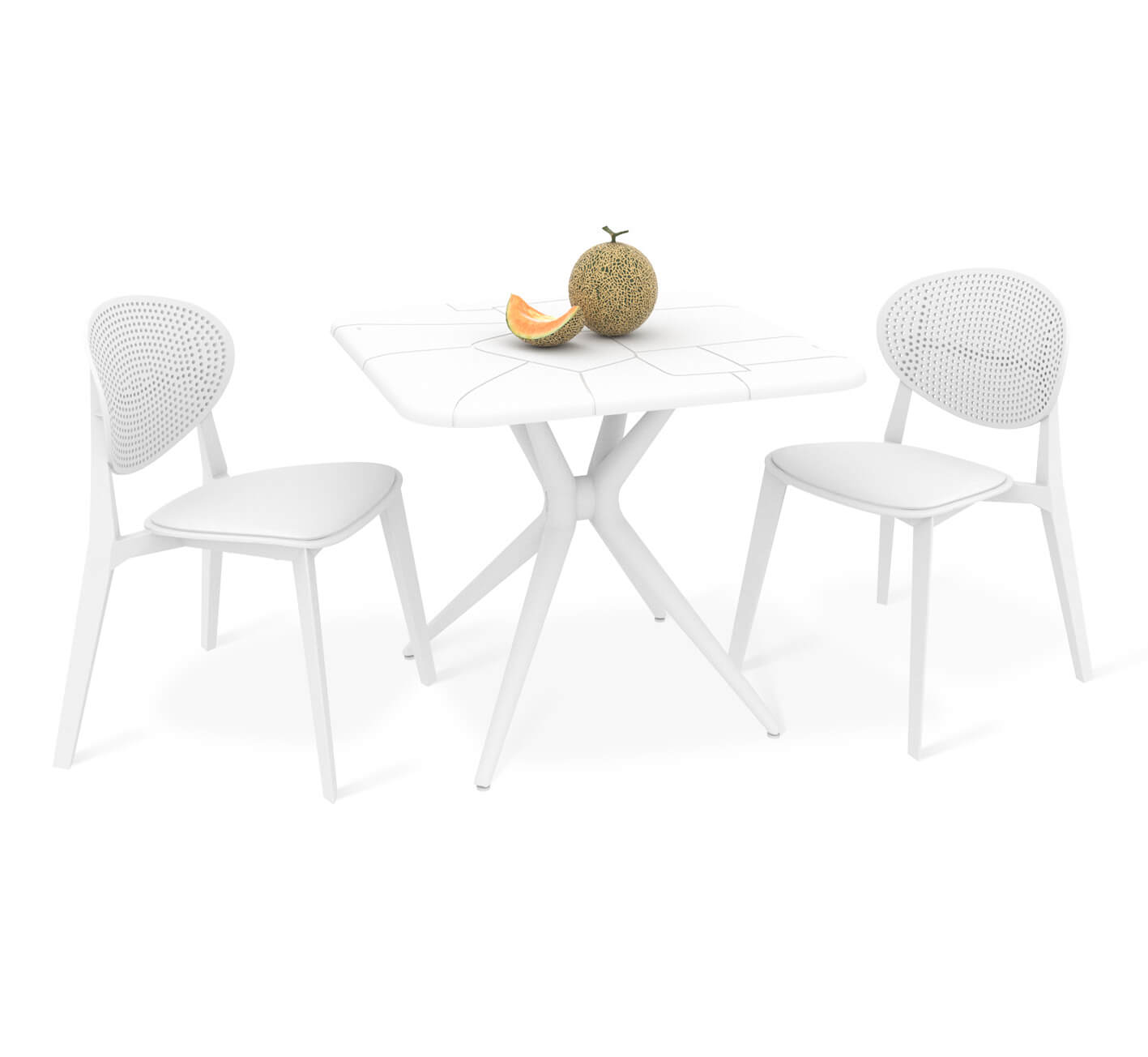 Стол выполнен из полипропилена с армирующими добавками, благодаря которым повышается жесткость и надежность. Изделие устойчиво к ударным воздействиям, негативным воздействиям окружающей среды и появлению царапин.