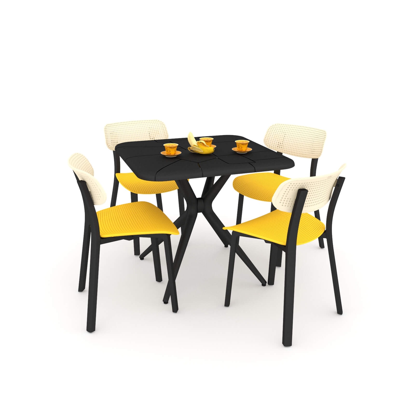 Современный комплект - один из инновационных и стильных предметов мебельной обстановки. Стол и стулья из армированного пластика отличаются своей прочностью, легкостью, долговечностью и считается самой востребованной мебелью среди современных потребителей. Современный стиль позволяет добавить комплект в любой дизайн дома, сада, кафе, бара, ресторана, офиса, общественных учреждений, залов ожидания и домашних интерьеров. Вы произведете впечатление на любого, кто посетит Ваше заведение или дом.