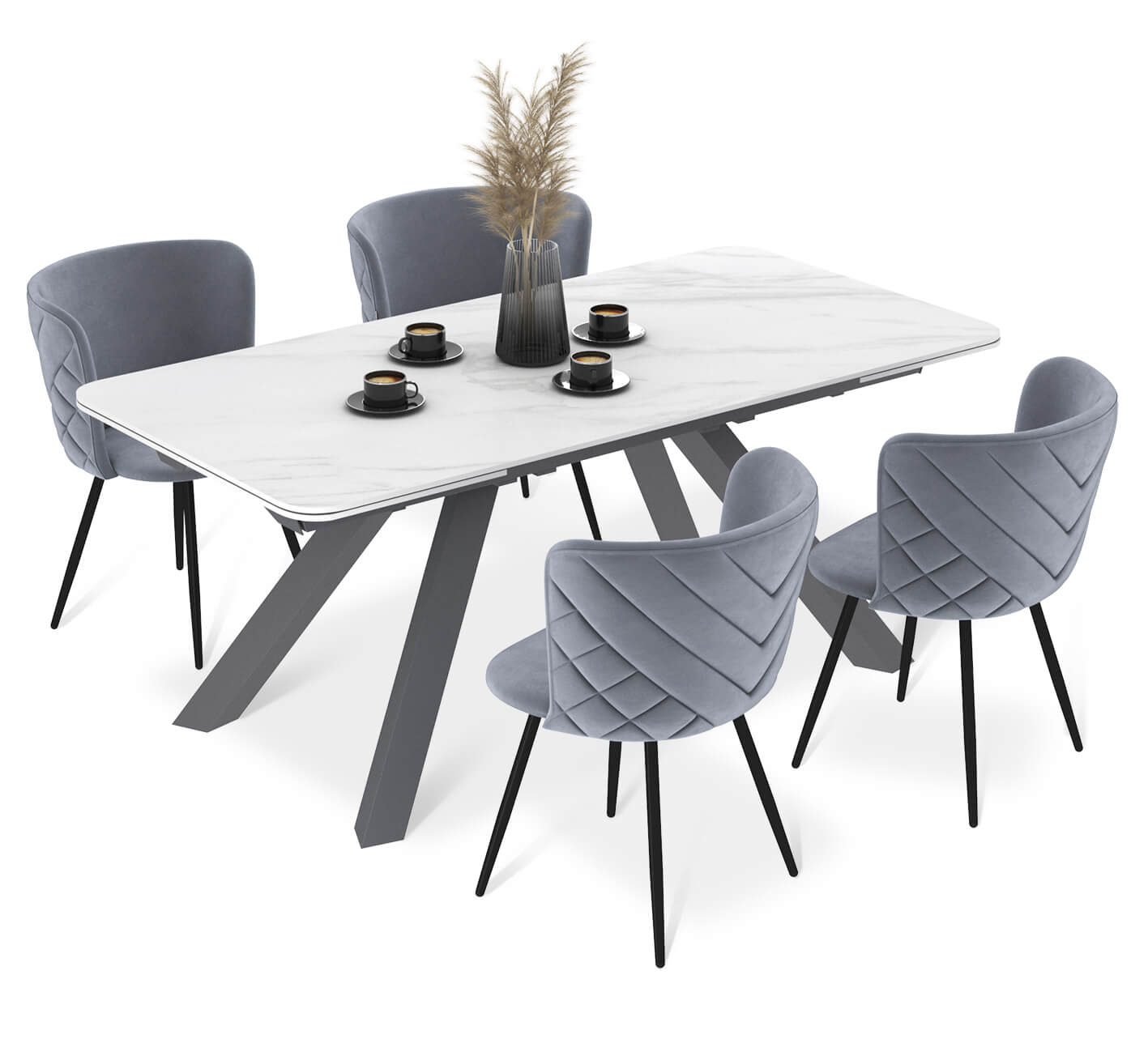 Стулья, в свою очередь, прекрасно дополняют обеденную группу и делают её визуально воздушной за счёт своего практичного и современного дизайна.