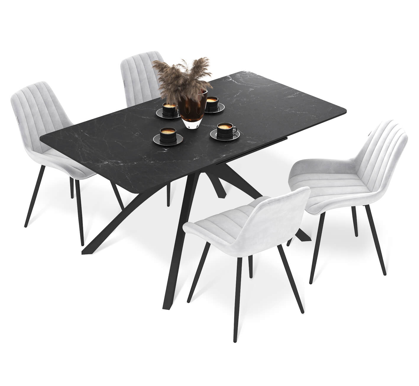Стулья, в свою очередь, прекрасно дополняют обеденную группу и делают её визуально воздушной за счёт своего практичного и современного дизайна.