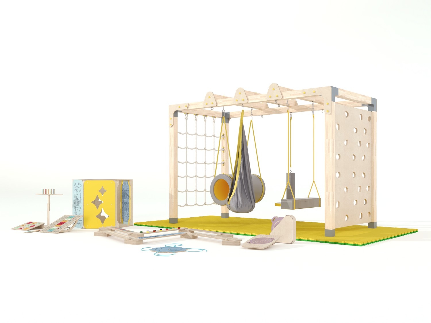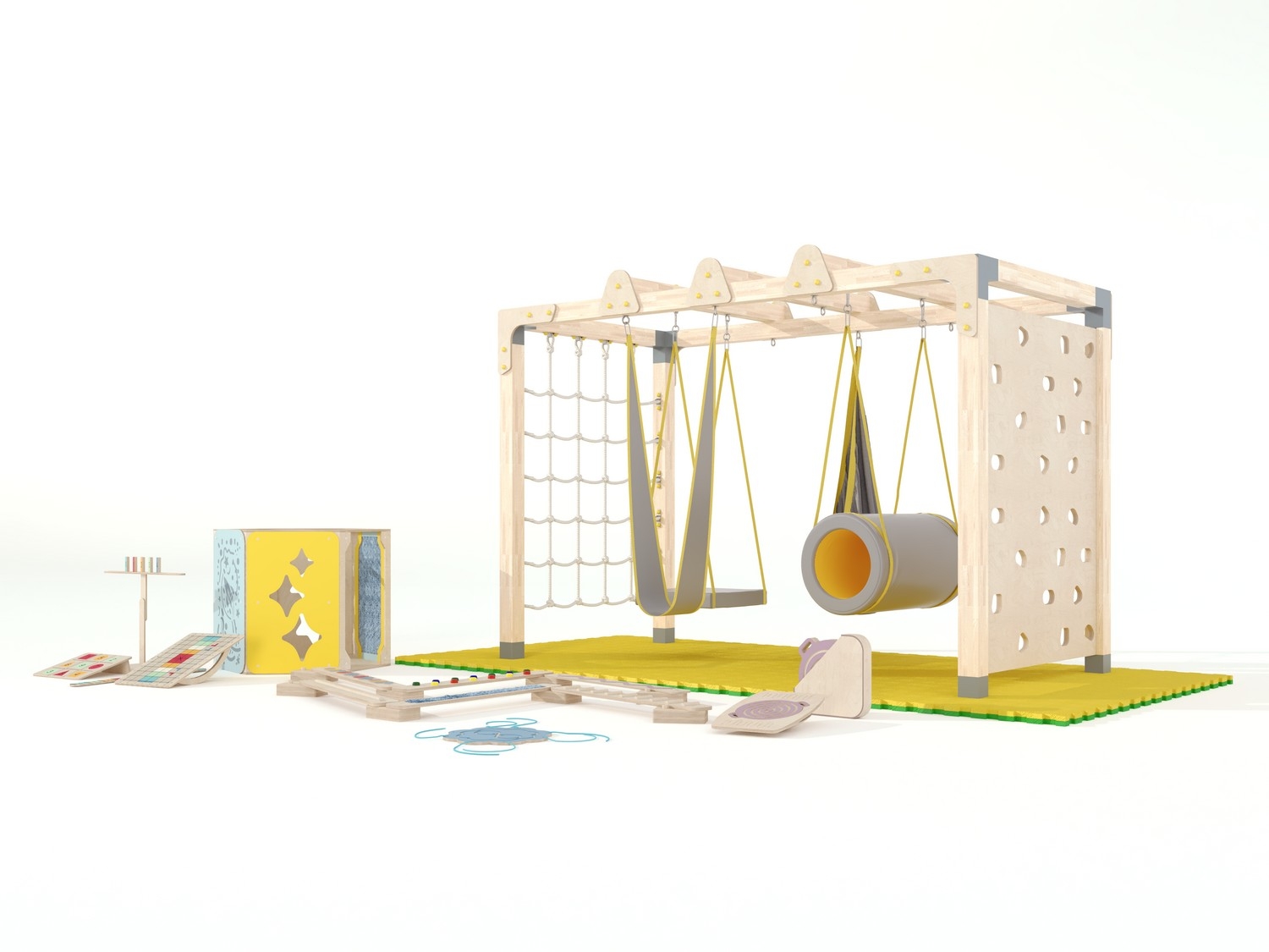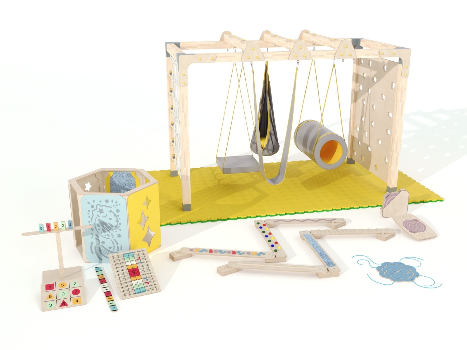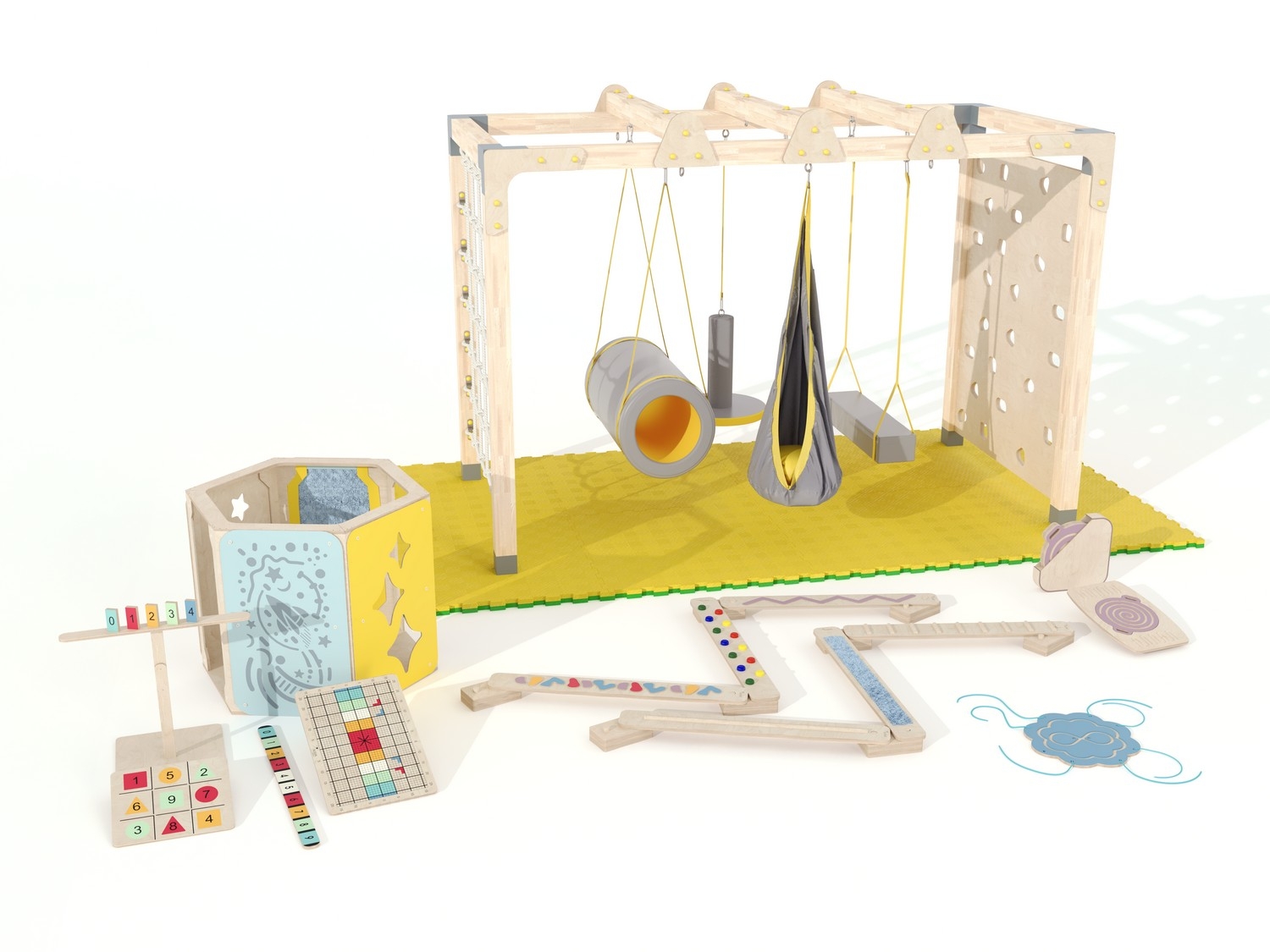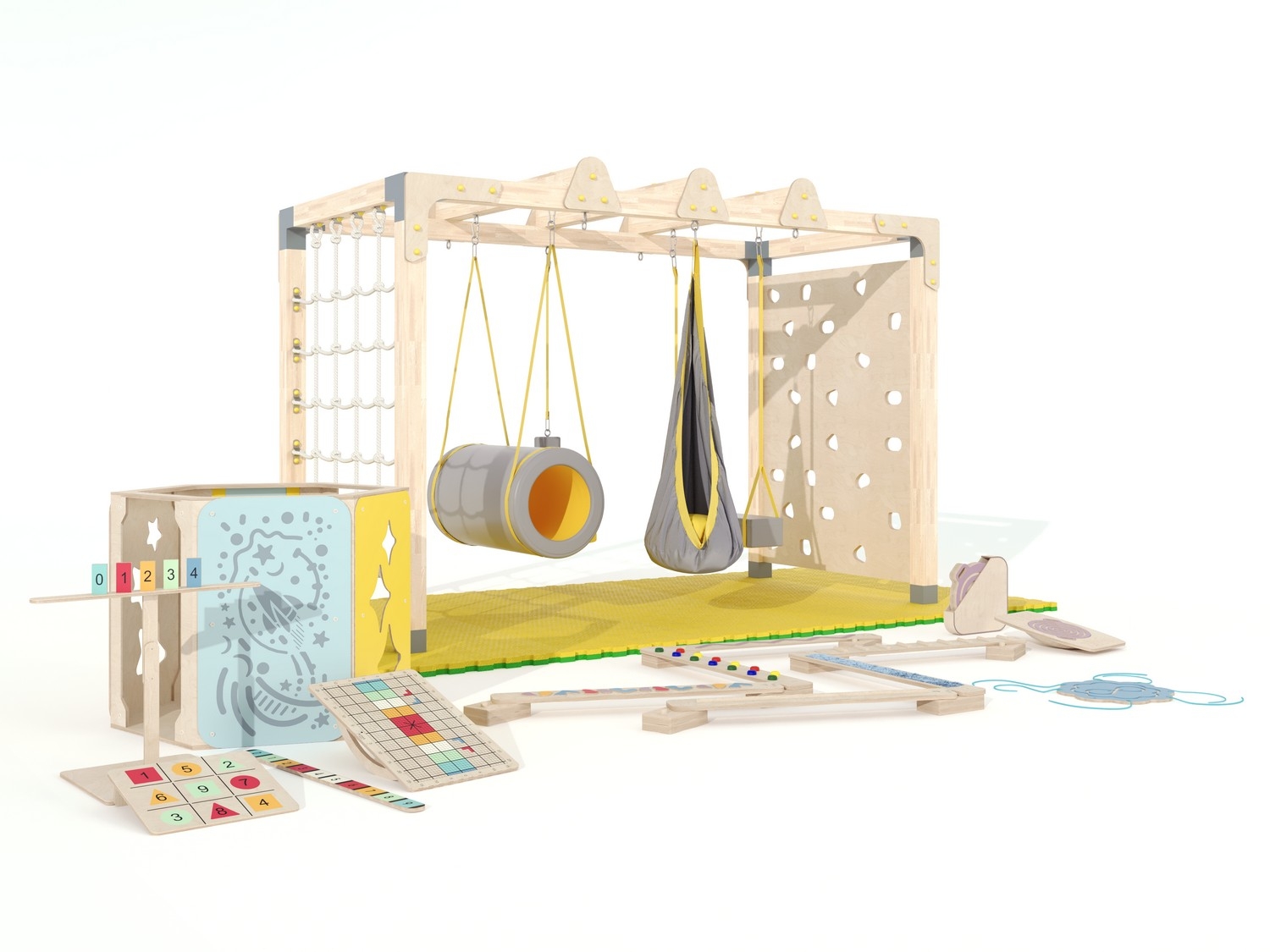 Комплект спортивного игрового оборудования для детей с нарушениями обработки сенсорной информации от органов чувств (нарушениями сенсомоторной интеграции). Занятия с комплексом помогают исправлять дисфункции проприоцептивной, вестибулярной и тактильной чувствительности у детей. Подходит как для работы коррекционных педагогов и реабилитологов, так и для общего физического развития детей.